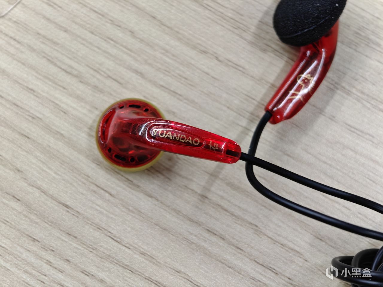 配色上用了红+金的组合,耳机柄上是原道的拼音,左右标识用的是楷书中文。