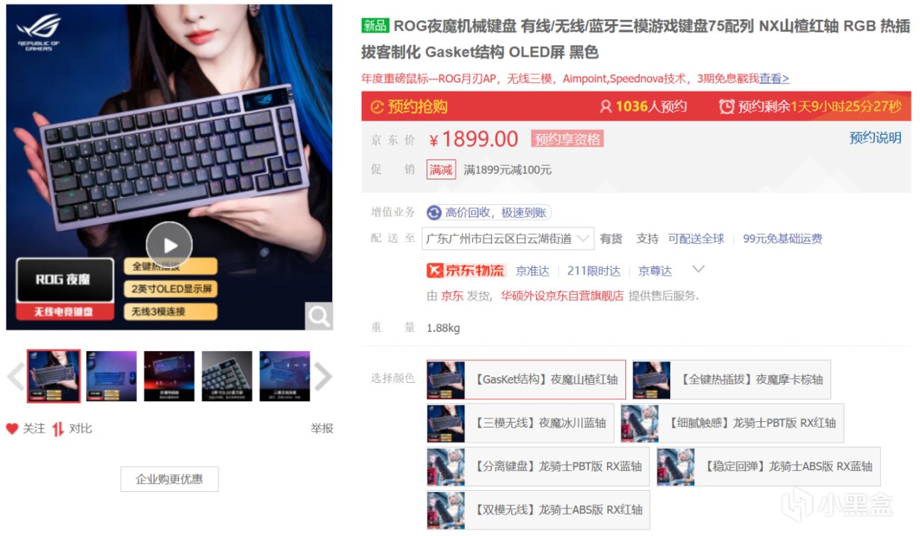 ROG 夜魔为罗技、雷蛇等大厂中首款 Gasket 结构 75 配列键盘,相较于国产键盘,其所支持的无线技术在稳定性、低延迟上有着绝对的优势,而得益于夹心硅胶、poron 轴座棉、硅胶底垫等填充,键盘几乎没有空腔音,这在大厂键盘中也是首次。此外,ROG 在键盘右上角还设计有一个 OLED 显示屏,搭配键帽透射出的 RGB 背光,满满的科技电竞感。