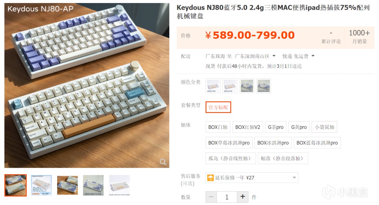 既然盘点 75 配列键盘那老大哥 Keydous NJ80 不得不提,虽然其已经上市了 2 年之久,但如今依然月销上千,是名副其实的常青树。键盘配置上,三模无线、热插拔、RGB 背光等都支持,也提供了金粉、快银、蓝莓冰淇淋等高端轴体可选,外观设计更是独树一帜,是非常著名的键帽架。