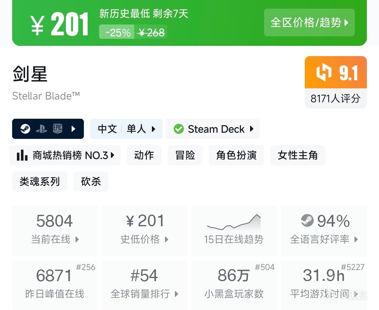 新史低(53款)