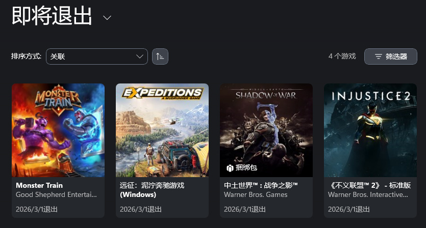 本期共有4款游戏退库