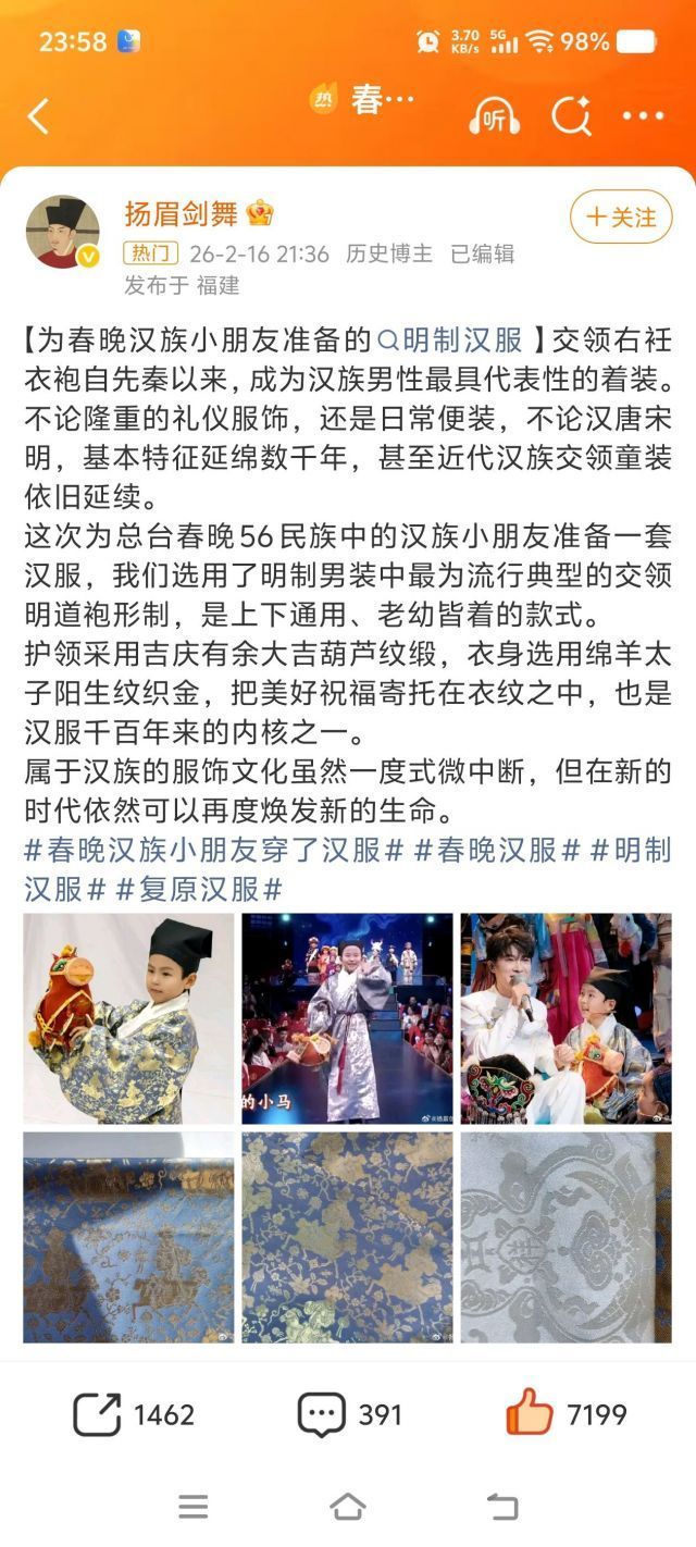 据悉该服饰系明制汉服,由知名人士参与负责,该博主多次参与有关服饰设计参考设计