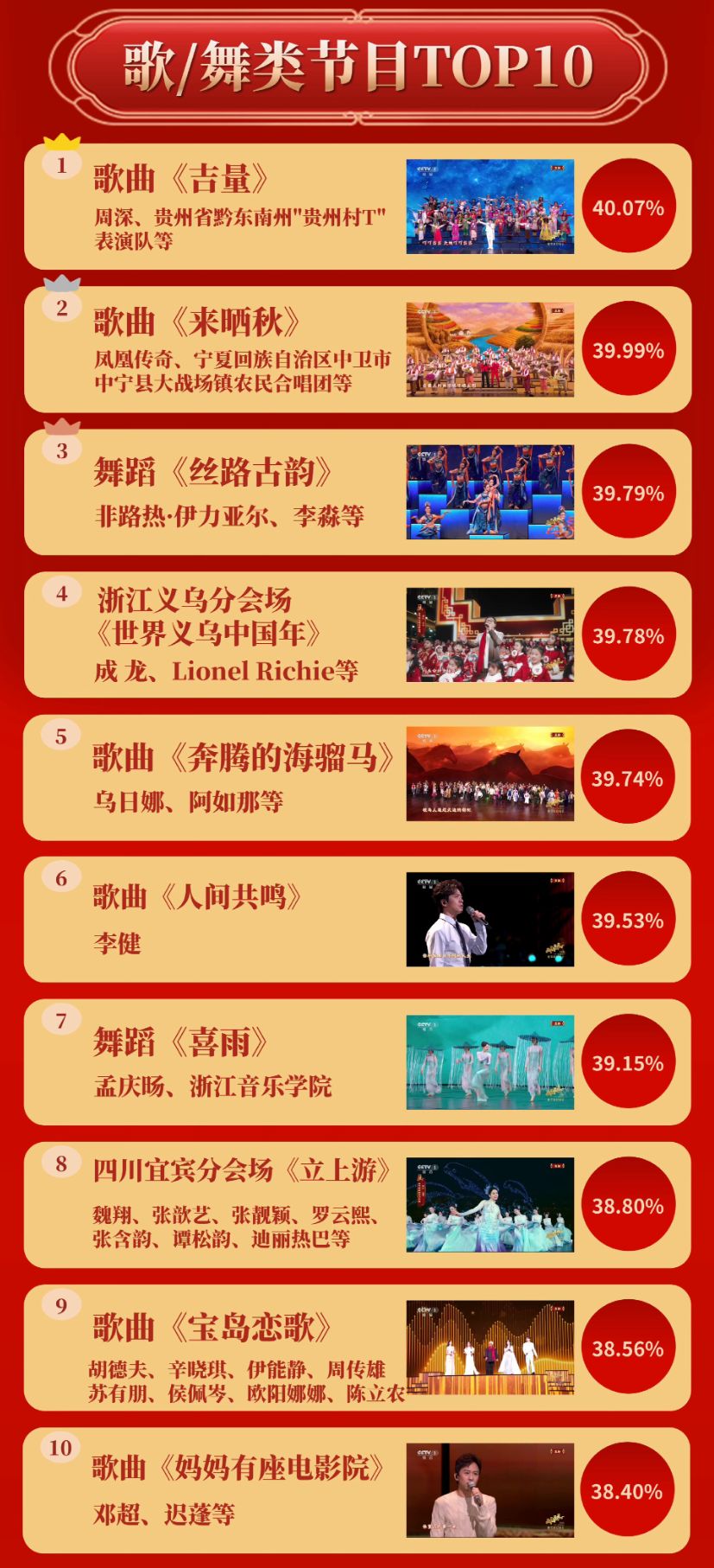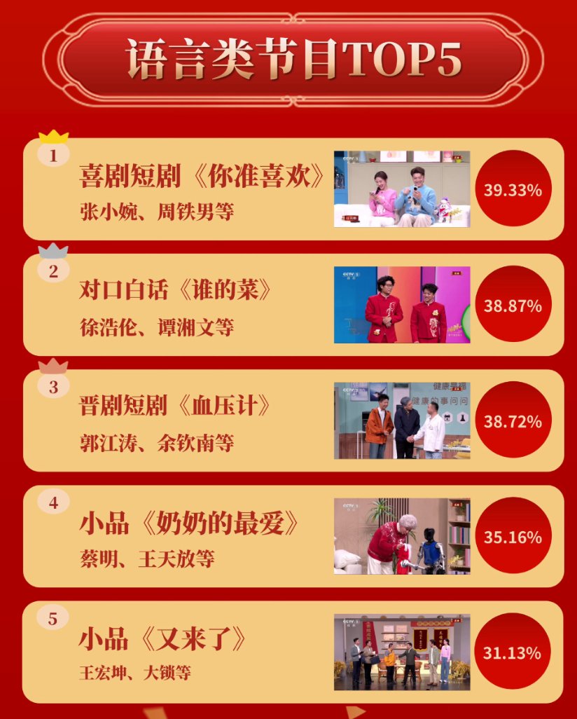 根据欢网大数据显示,春晚实时收视率最高突破40.46%,平均收视率为33.14%。