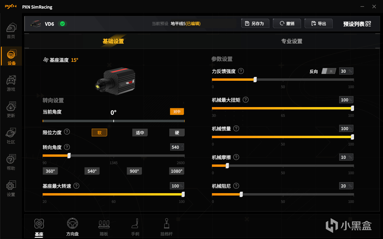 转了一下方向盘,方向盘手搓灵敏度识别还是挺高的的,基座反馈精准没有延迟。