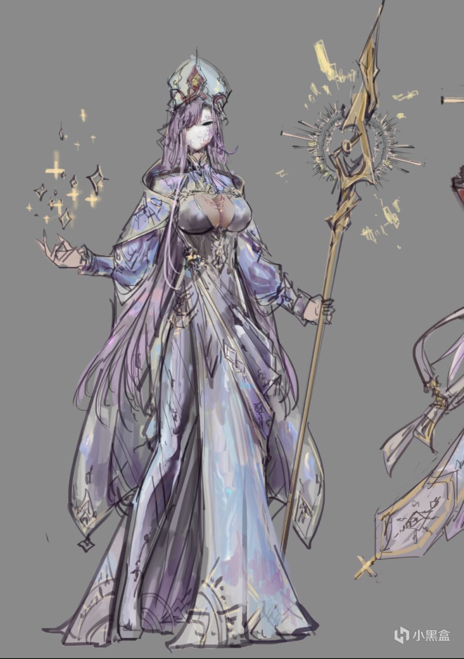 目前有两个基本外观方案,并且为了增加女神官的神秘感,给她的脸部增加了遮挡物,目前也在想使用面目还是眼罩还是面纱?