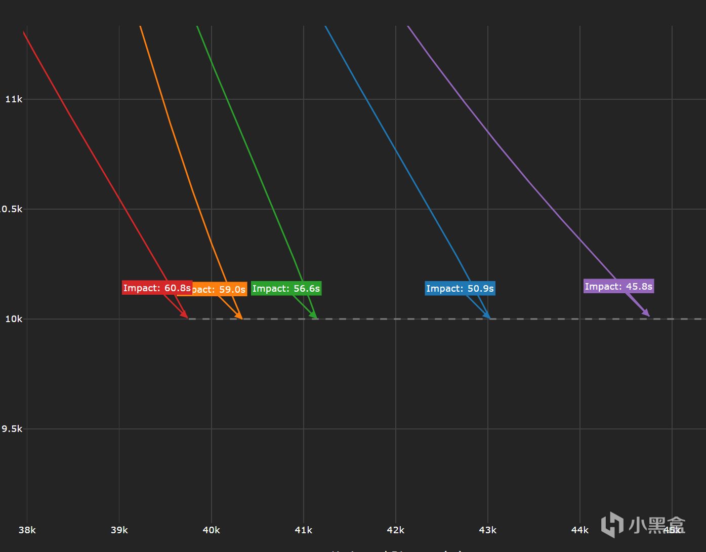 即使是拿思想90来对比(紫线为思想90),PL-12AE也能勉强站稳脚跟,至少相比与其他中距弹没有落后太多,而在实战中考虑载机的初始能量,在开局压制中J-10C射出的PL-12AE甚至可能比思想90更快