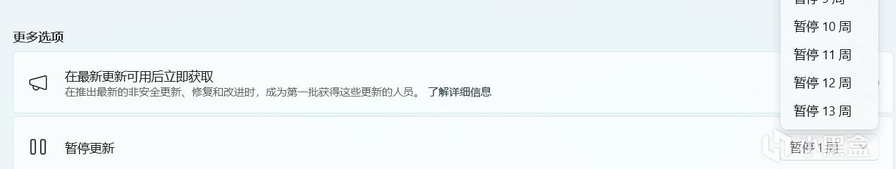 默认支持最多5个星期暂停更新,如果进行修改,可以暂停更新到2050年