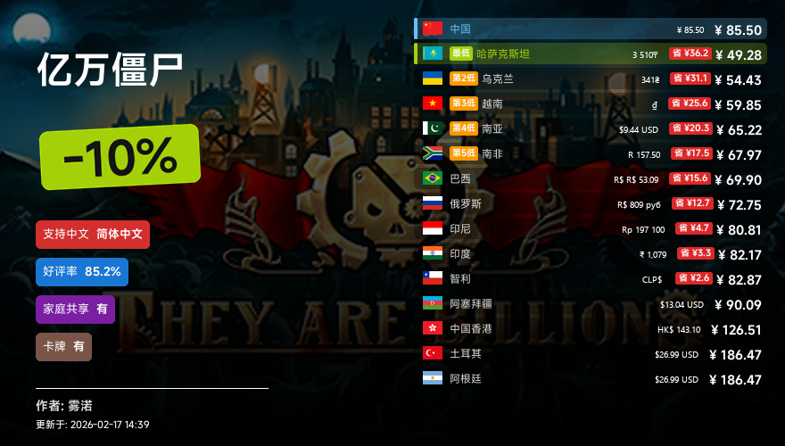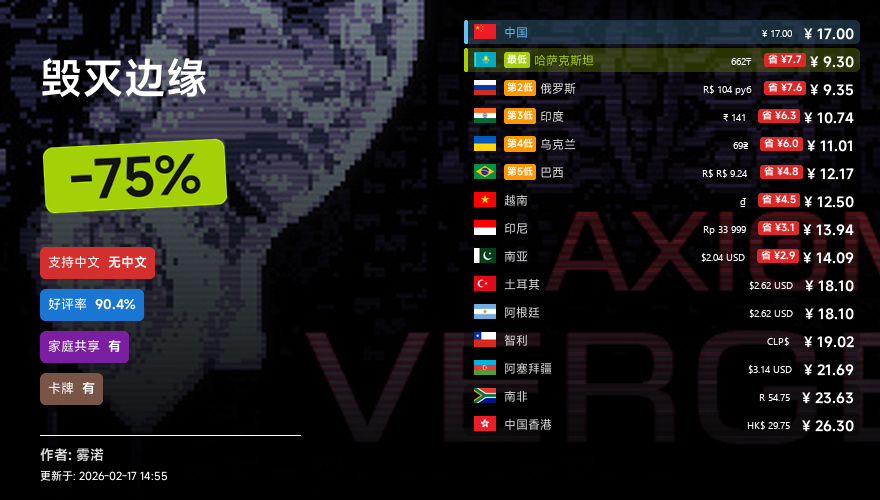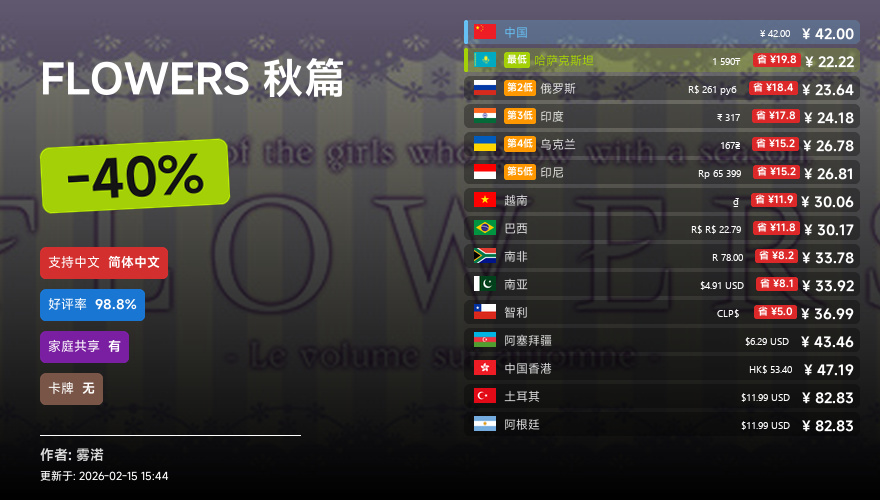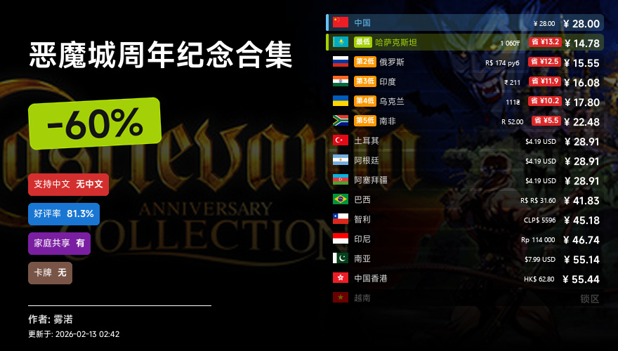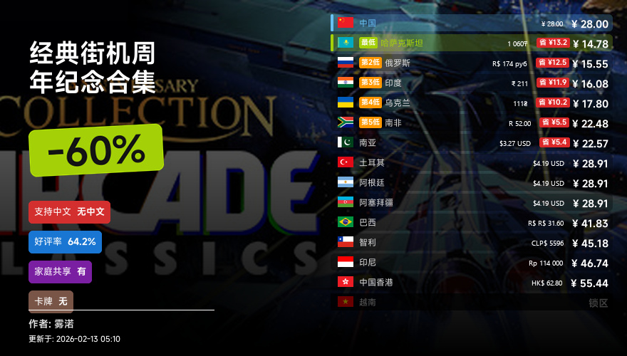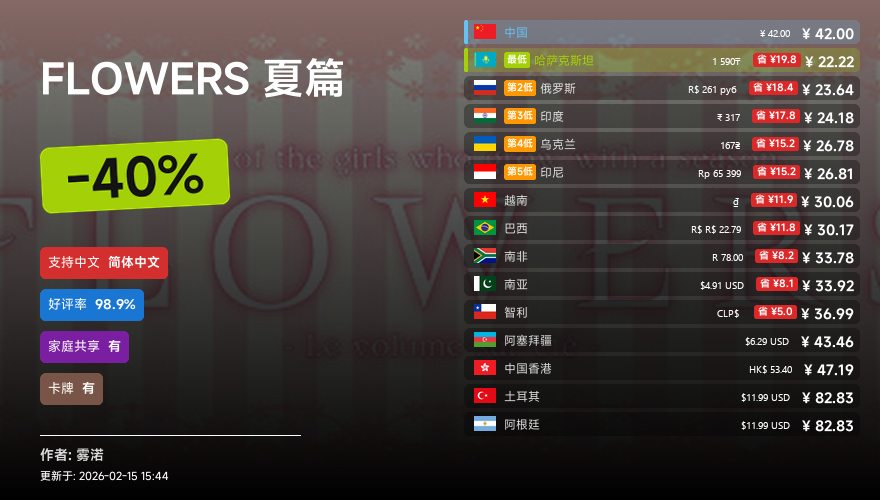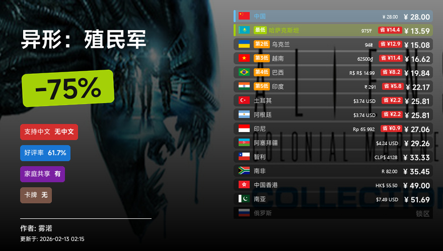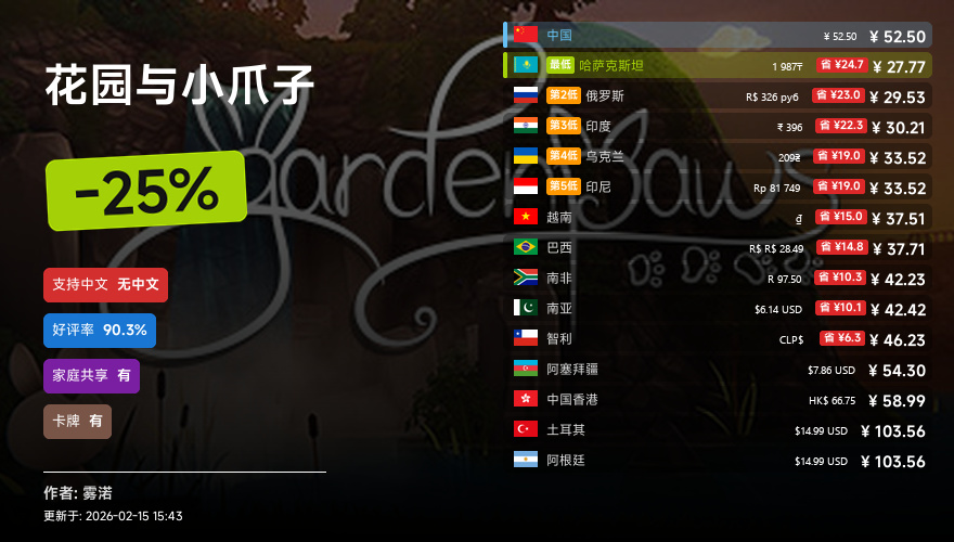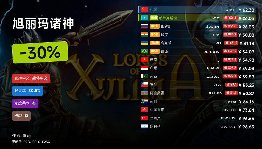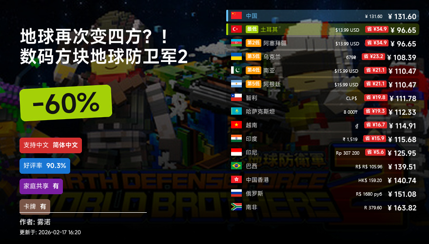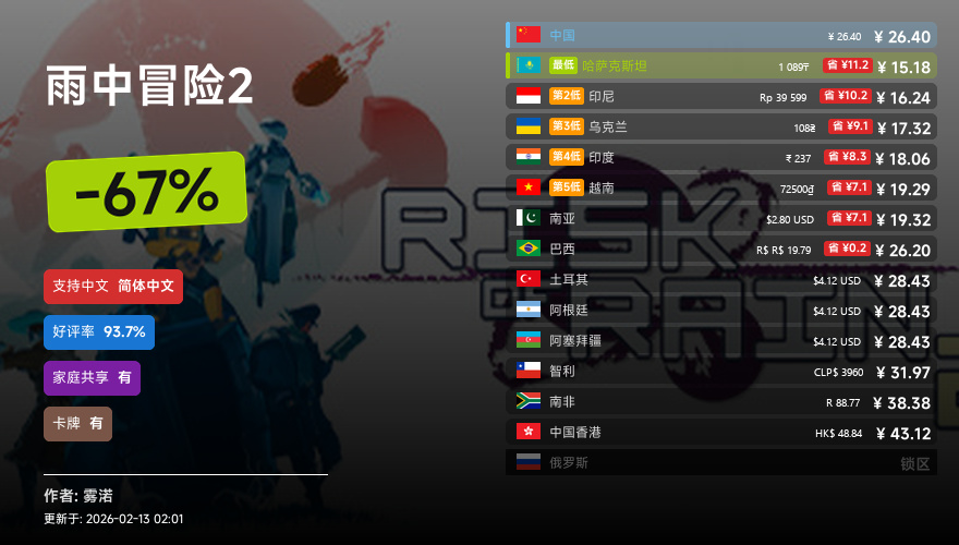 主要的地区为,国区,港区,乌区,哈区,俄区,南亚,印度,阿塞拜疆,阿区,土区,智利,巴西,越南,印尼,南非。这十五个地区的价格