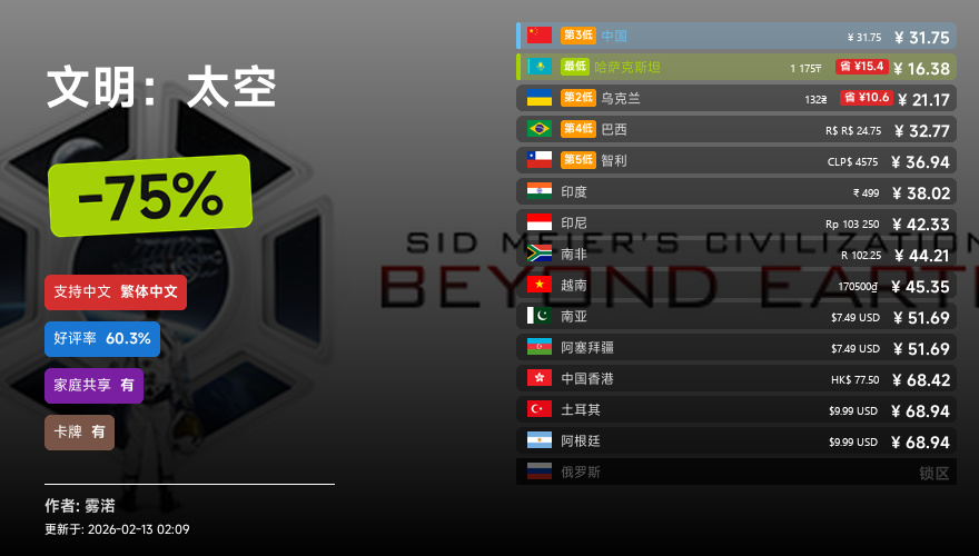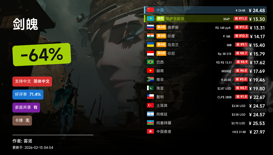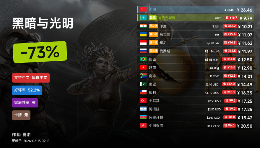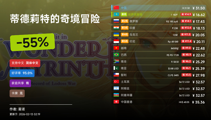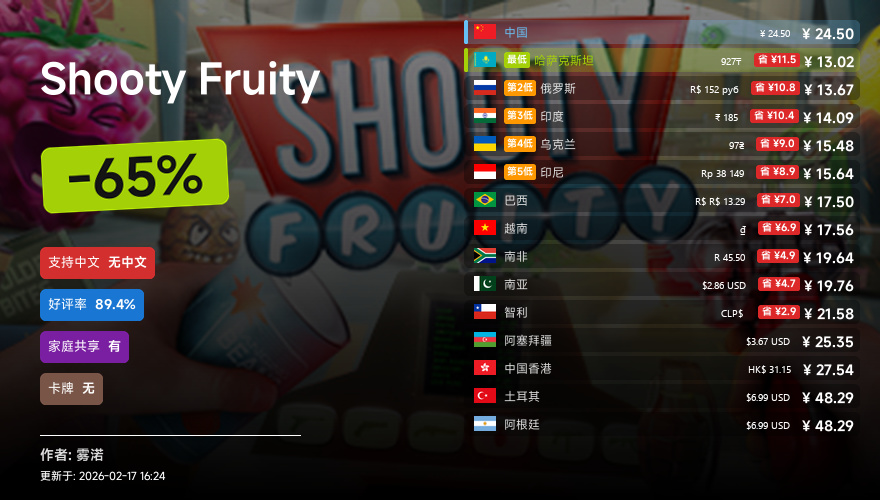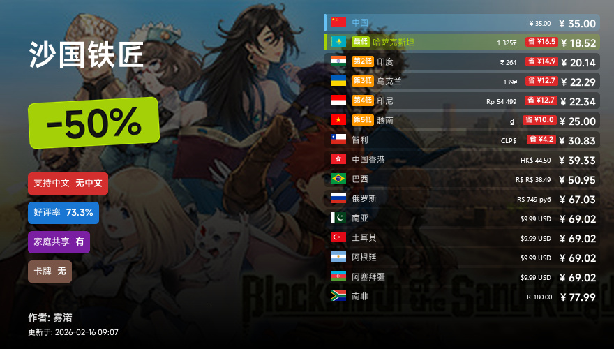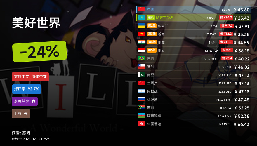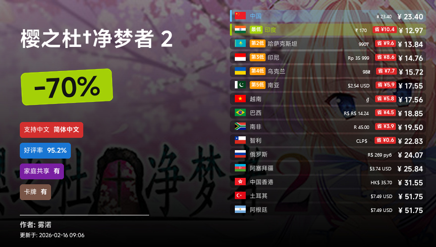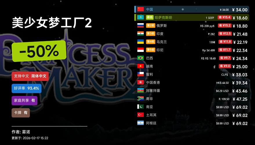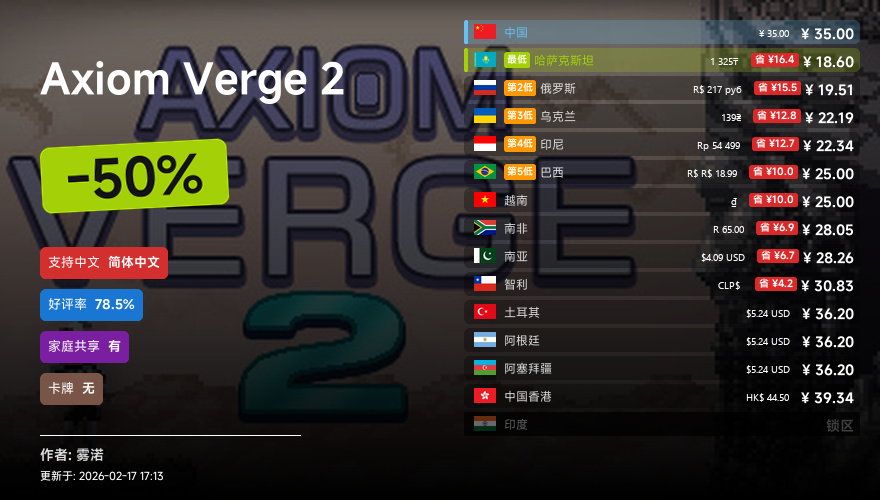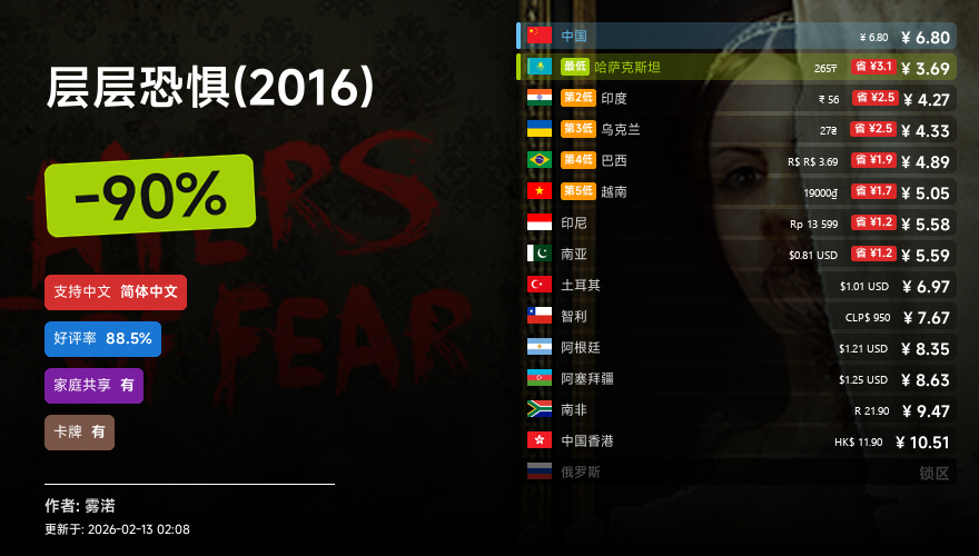 主要的地区为,国区,港区,乌区,哈区,俄区,南亚,印度,阿塞拜疆,阿区,土区,智利,巴西,越南,印尼,南非。这十五个地区的价格