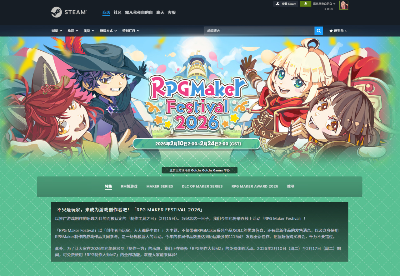 2月10日到2月24日,steam开启了为其两周的RPG Maker节日!