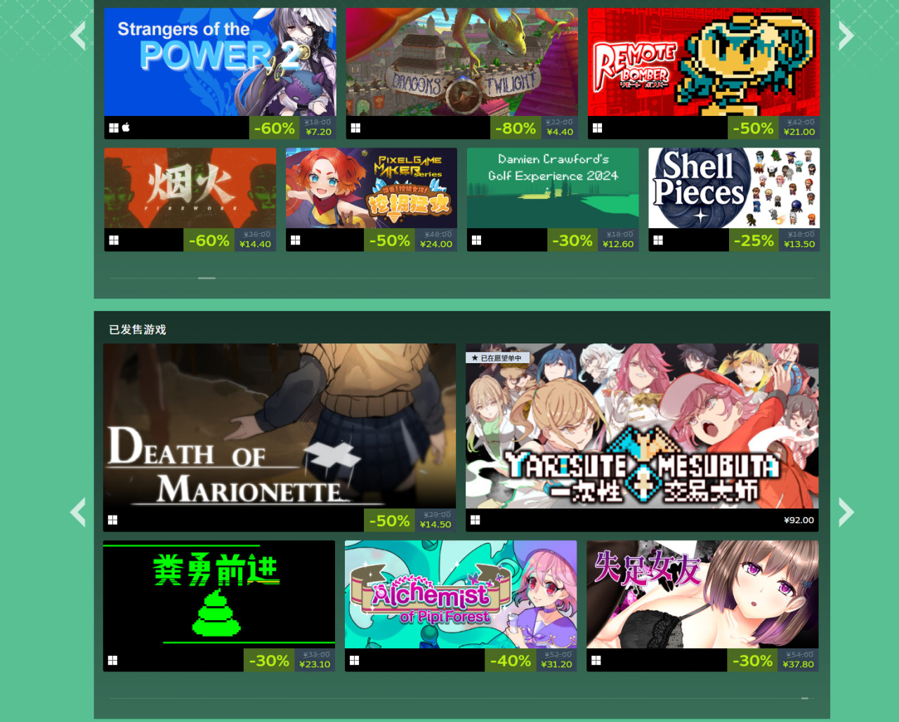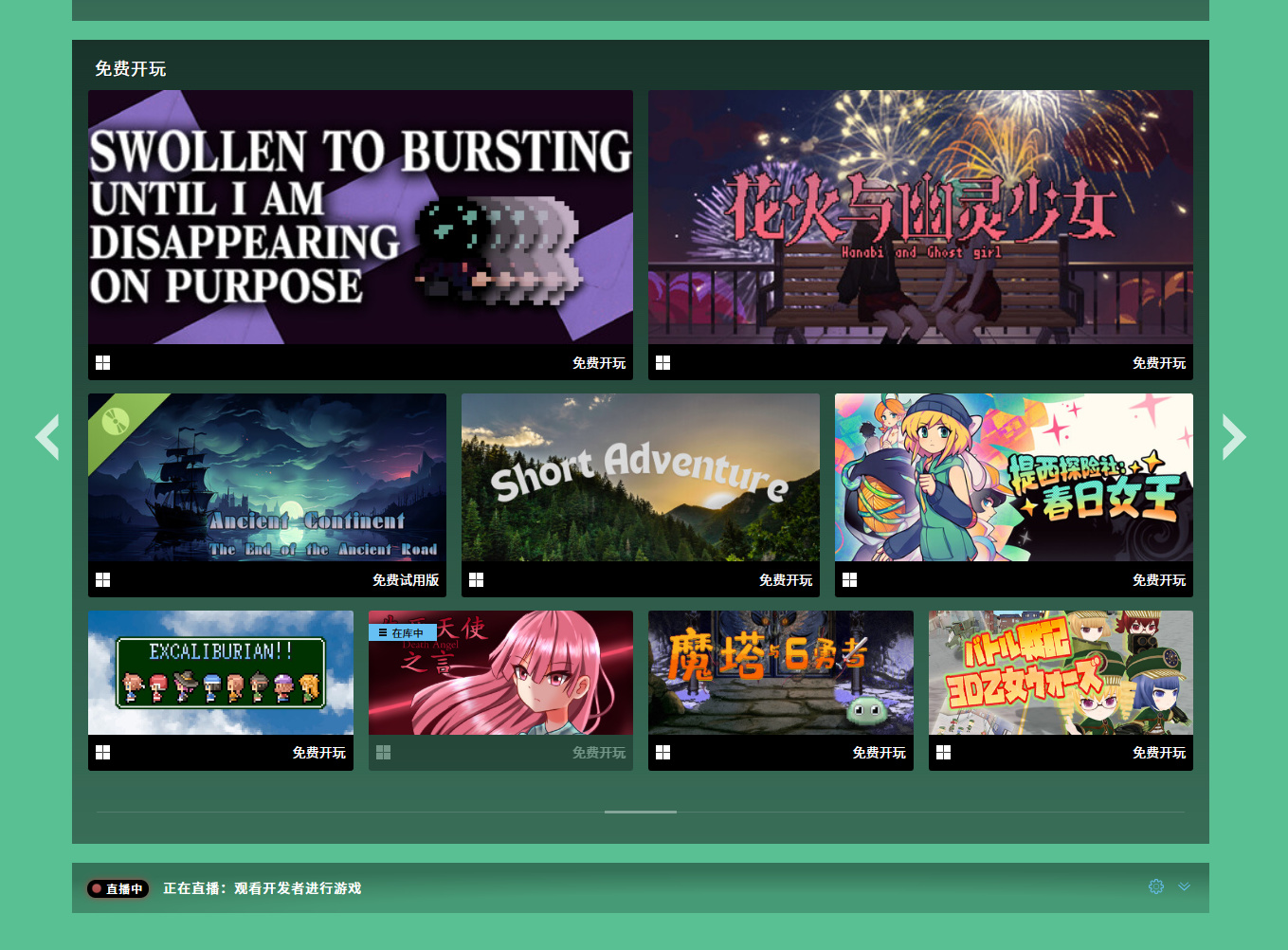 在促销之外呢,也给许多免费游戏提供了宣传的机会,像是提西探险社,还有花火幽灵少女,都是很高分的游戏。