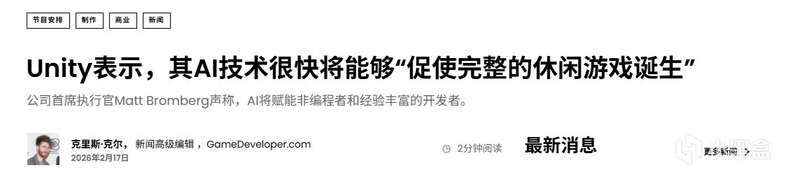 儘管近期Google DeepMind的Project Genie引發市場對AI生成遊戲的擔憂,導致Unity股價一度大幅波動,但Bromberg仍對AI長期影響持積極態度,認爲其將爲行業帶來正面推動。Unity此舉無疑加速了“人人皆可開發遊戲”時代的到來。