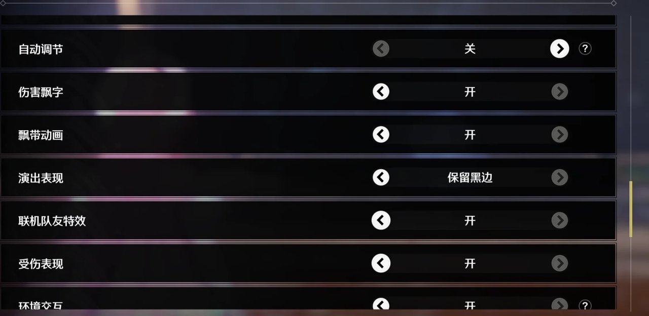 D.自动调节关闭,打开完全没有用,而且存在挺大的造成卡顿等不良体验的嫌疑,而且关闭后我还使用了NVIDIA滤镜,完全不会导致性能不足。其余看自己