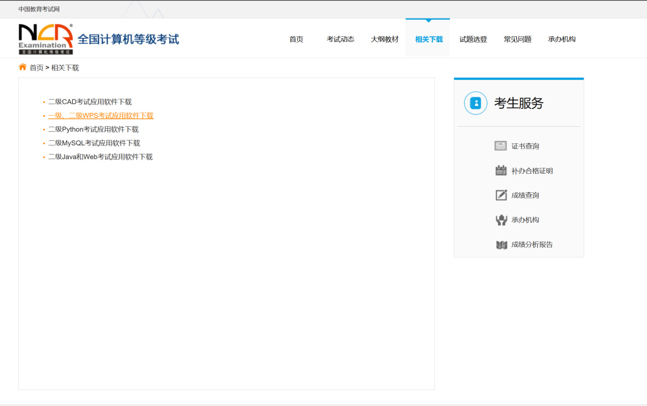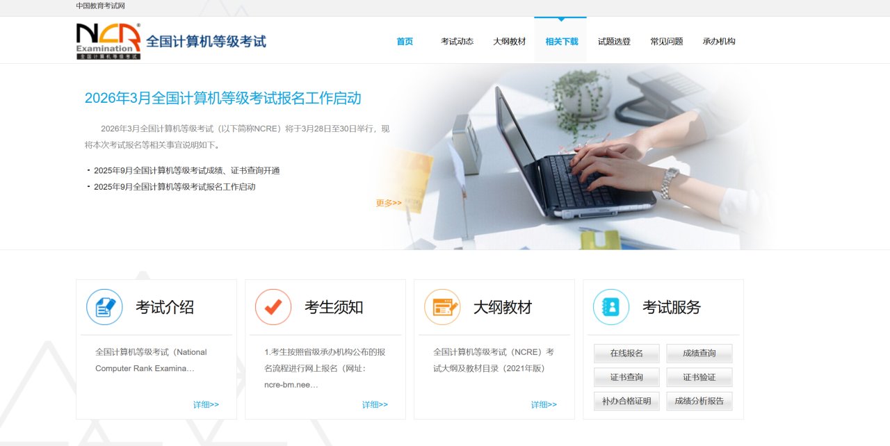 首先打开全国计算机考试官网,点击上方ui的“相关下载”