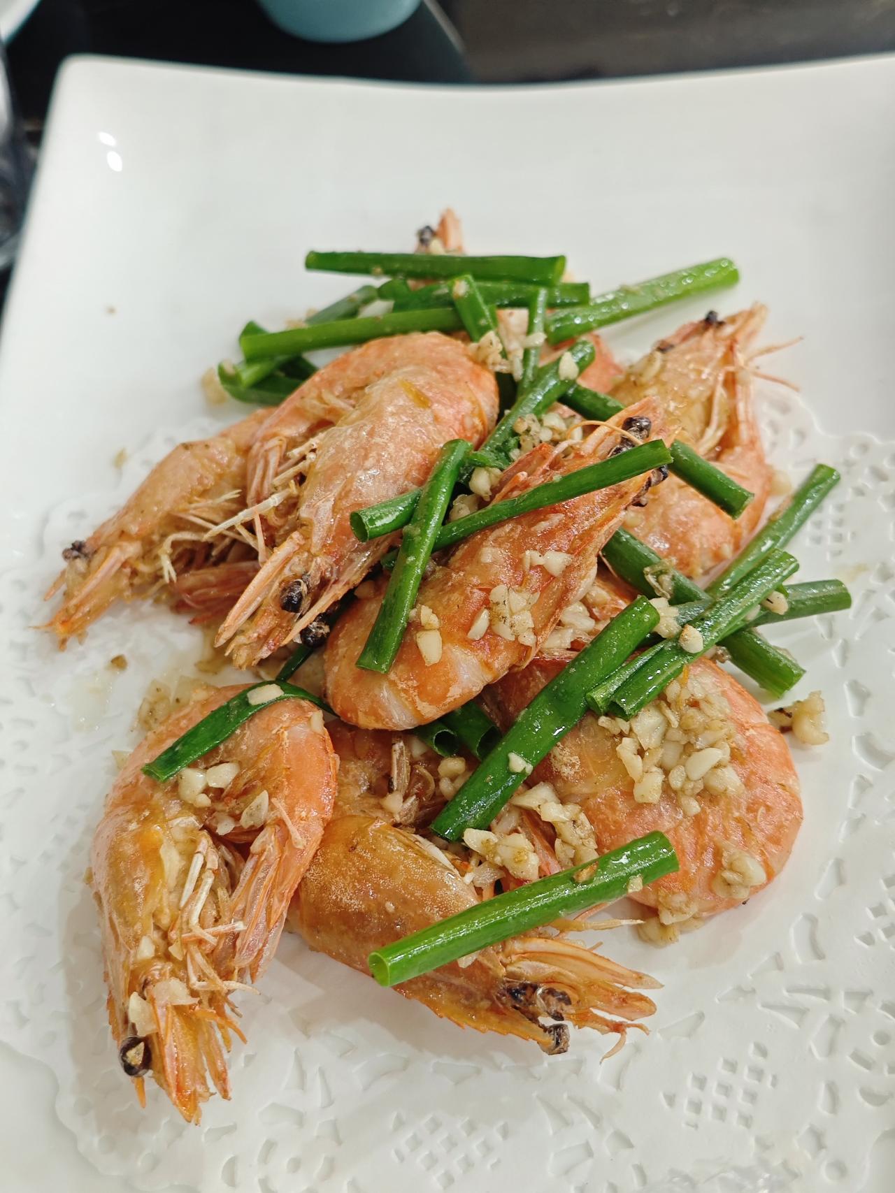 避风塘炒明虾,虾调味略咸,且只在壳上,虾肉紧实清甜。经过料理后虾壳并不是特别难嚼,如果直接混合着虾壳一起吃入嘴中就不会显得很咸,虾肉的甜与虾壳的咸可以比较好的中和起来。