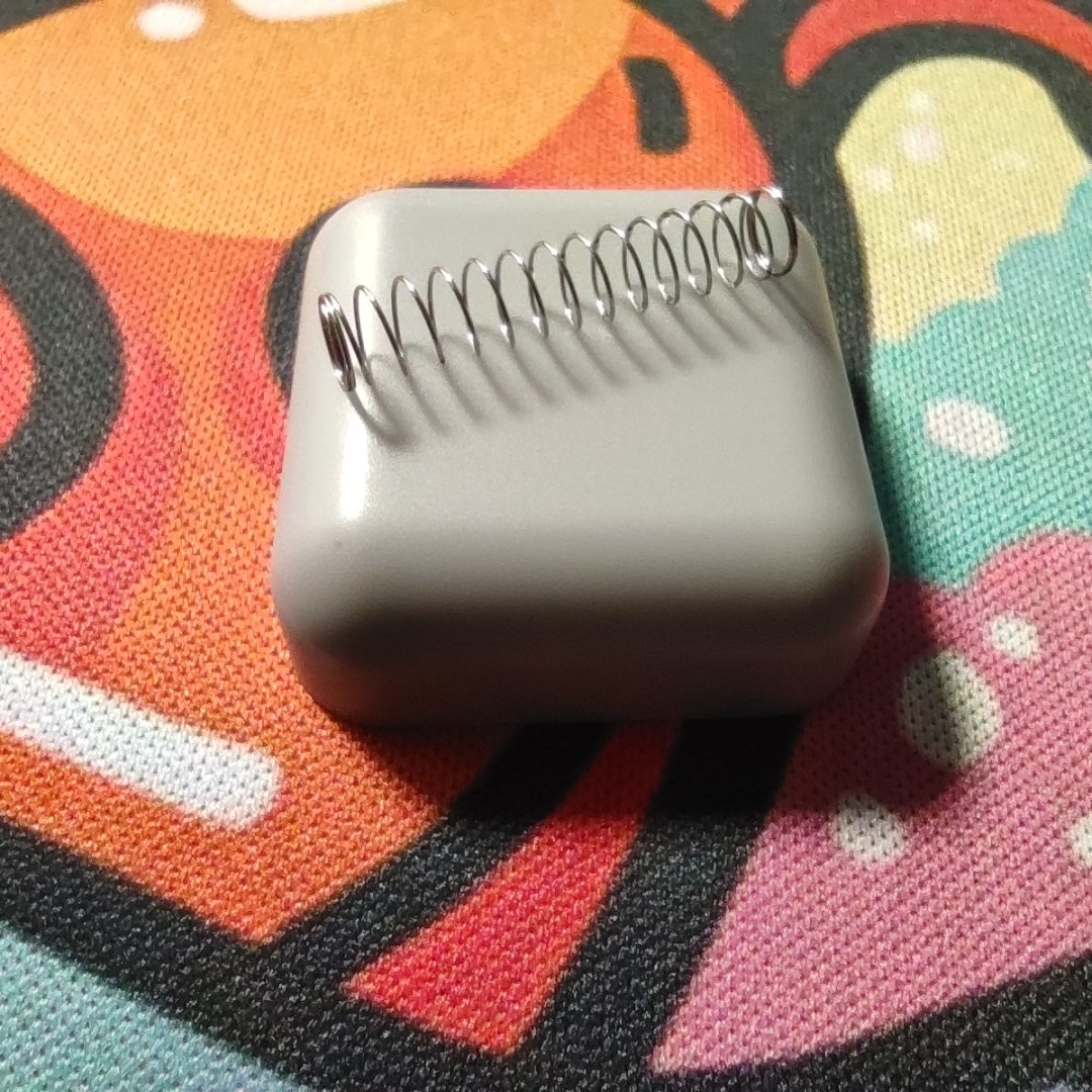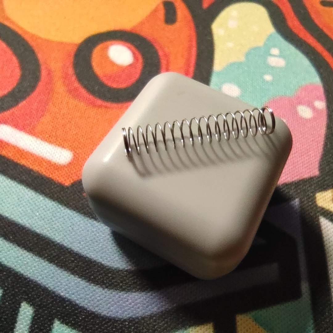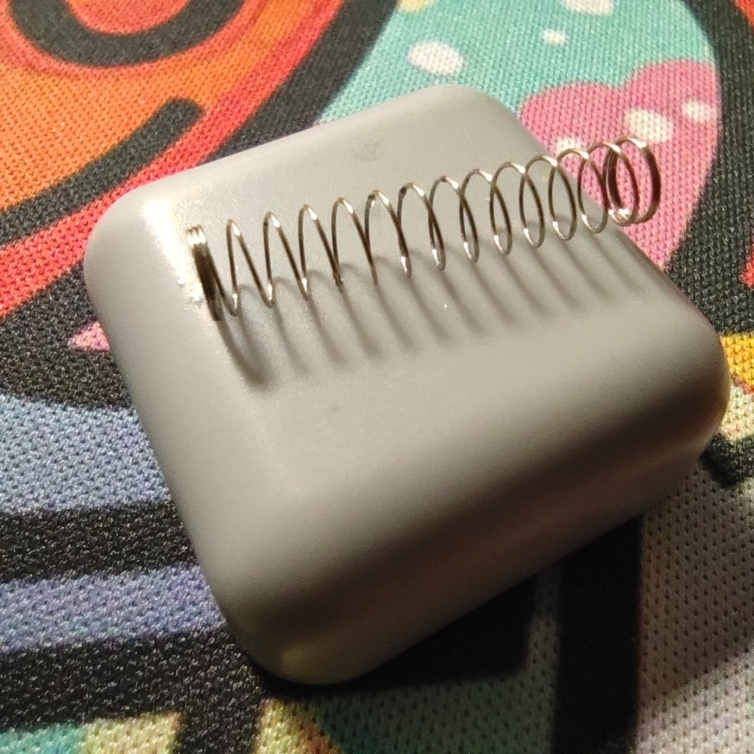將軸體拆開,注意這款軸體採用的是四角卡扣設計,最好使用開軸器打開(之前開一個只有兩個卡扣的折騰我半天),將軸體打開,可以明顯的看到軸心處和底殼內部有潤滑,而彈簧則是採用了21mm的加長單段彈簧,相較於一般彈簧回彈會優秀些。而軸心採用的加長軸心,可以讓觸底的聲音更加集中,從而使聲音更優秀。