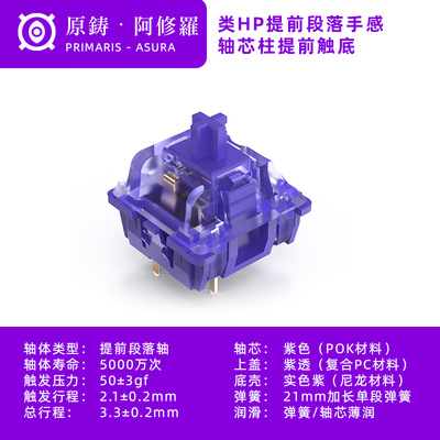 阿修羅或許是原鑄系列軸體中最特殊的一個,因爲他的名字是三個字(劃掉)因爲他是唯一的段落軸,但是不同於青軸,它的段落更像薄膜鍵盤的那種手感,但不意味着用提前大段落軸就是薄膜鍵盤了。