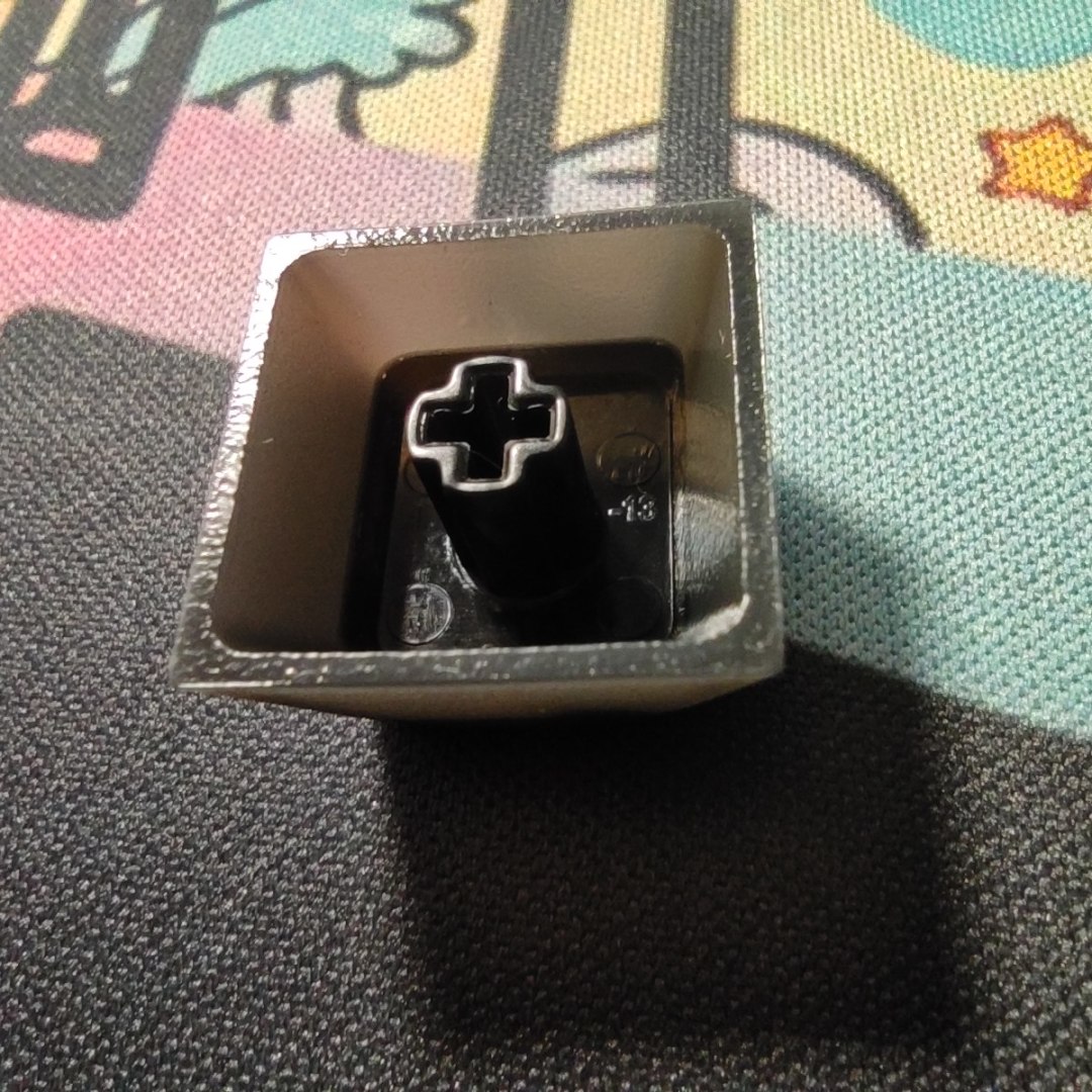 說是硅膠鍵帽,其實並不全是,因爲中間和軸體接觸的地方以及和手指接觸的地方還是需要硬性材料支撐的,因此換成了ABS材質。