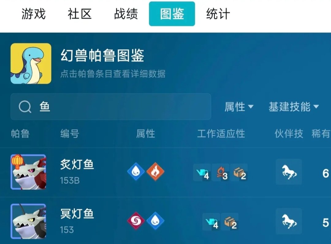 点击《幻兽帕鲁》卡片,选择图鉴,搜索炙灯鱼,点击即可