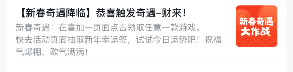活动入口:【新春奇遇】活动传送门