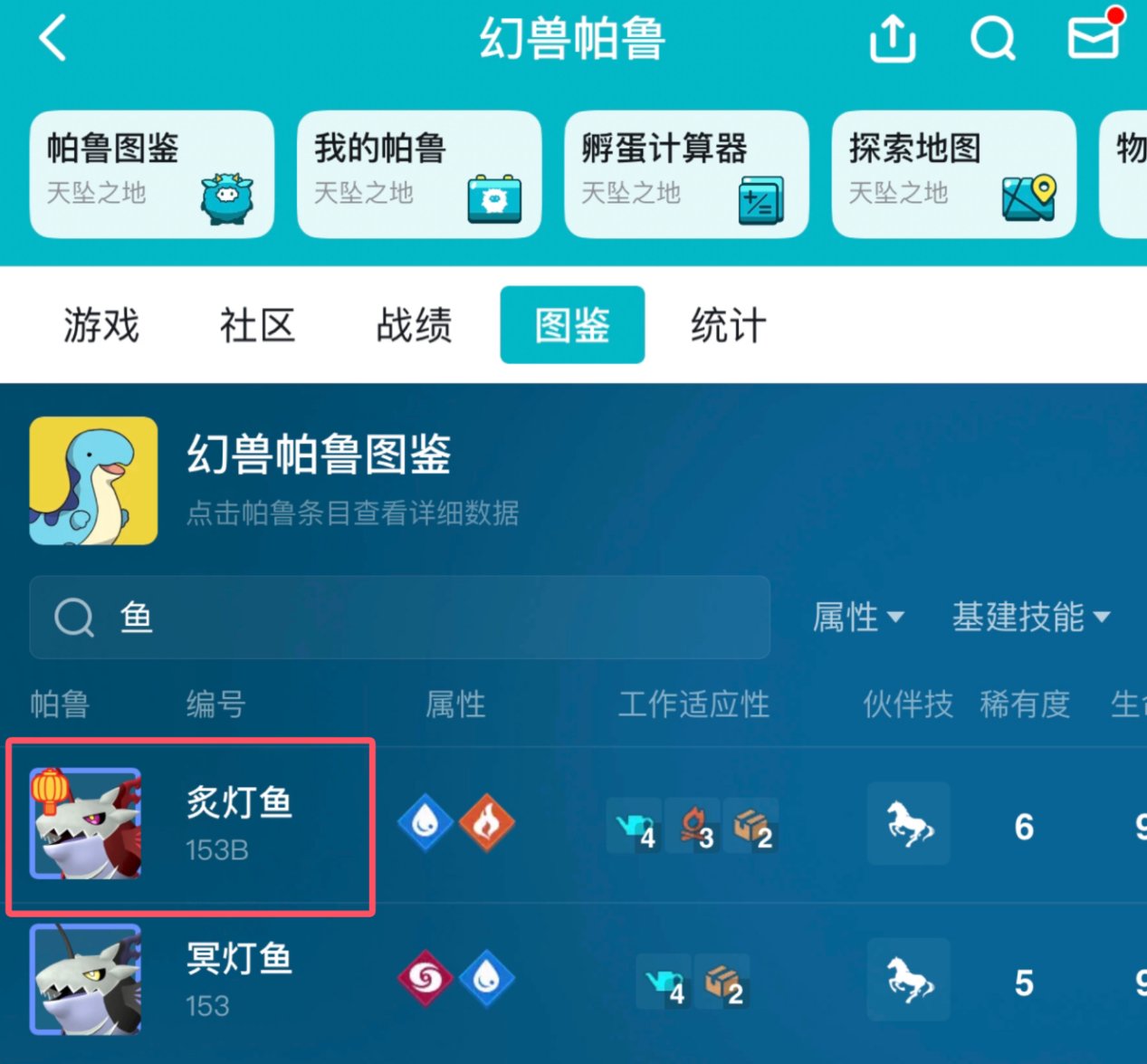 前往游戏【幻兽帕鲁】页面 点图鉴 然后搜索鱼 点击带着灯笼的炙灯鱼即可