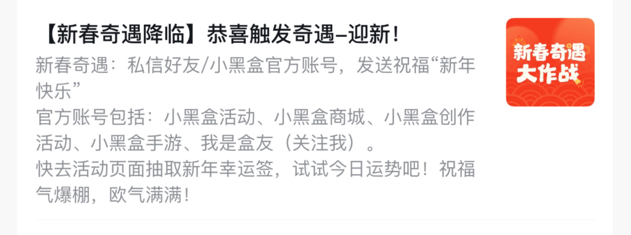 大家新年快乐!小黑盒的新春活动【新春奇遇大作战】已进入最后一日