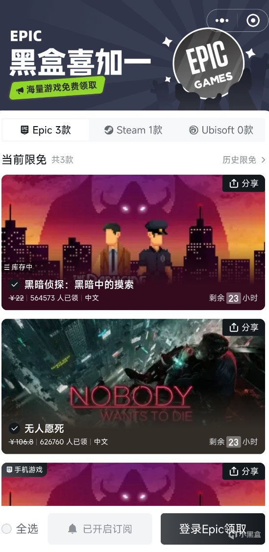 點擊一下“登錄epic領取”即可