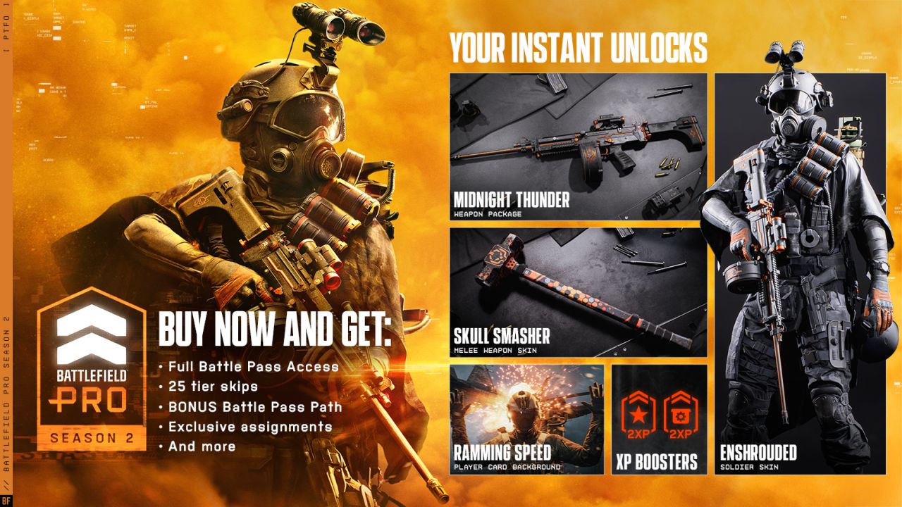 購買第2季戰鬥通行證即可解鎖6項獎勵,並參與4條全新主題路線,內含全新軍備、武器套件、士兵外觀、經驗值加成及更多內容。完成這些即可解鎖終極路徑,內含更多獎勵助你控制並主宰戰場。