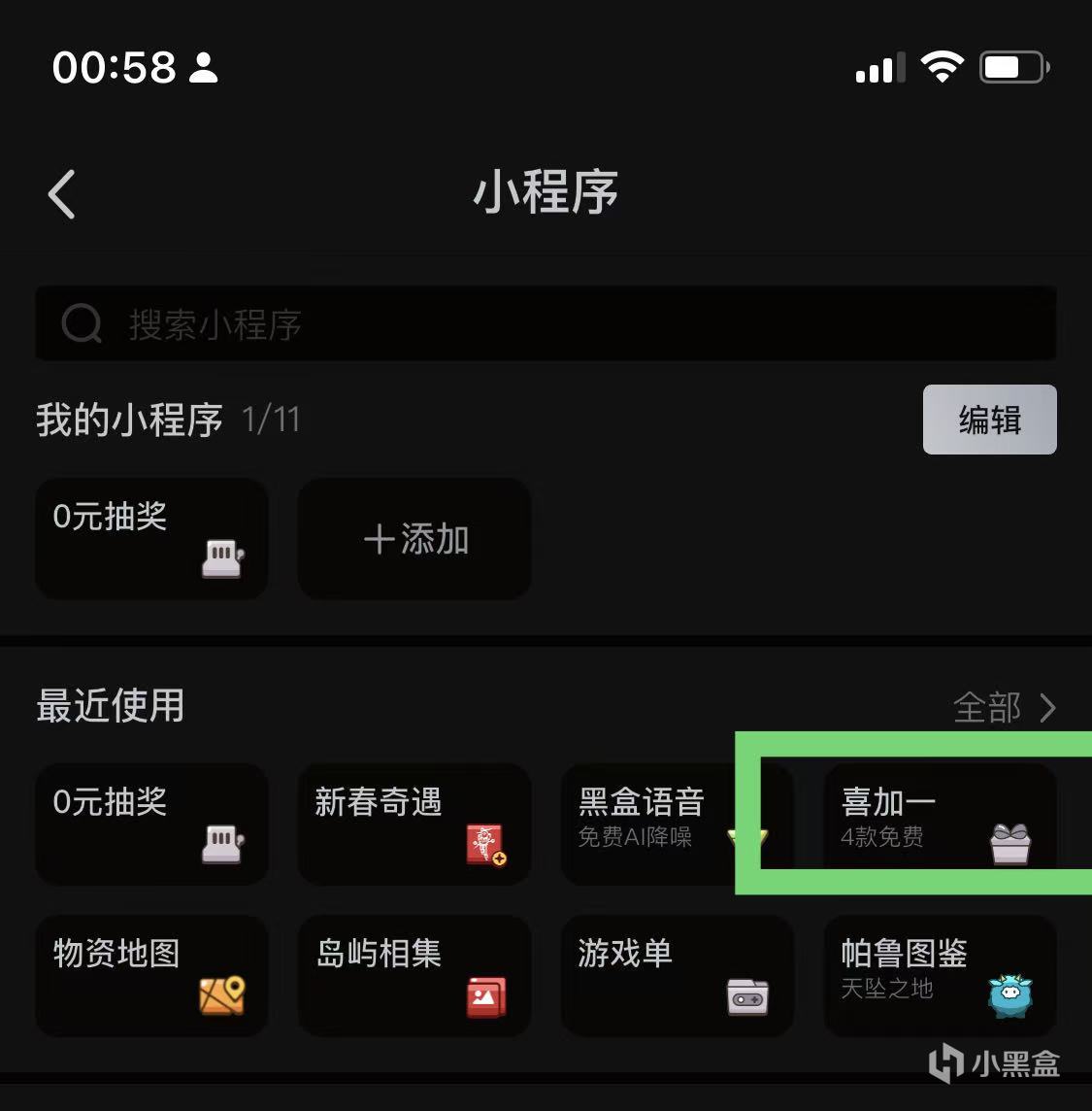 点击【游戏库】⇒【小程序】⇒在【喜加一】