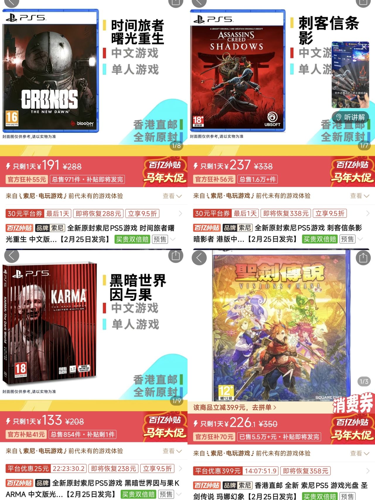 1.《刺客信条影》🇭🇰236(-30)|史低🇭🇰221
