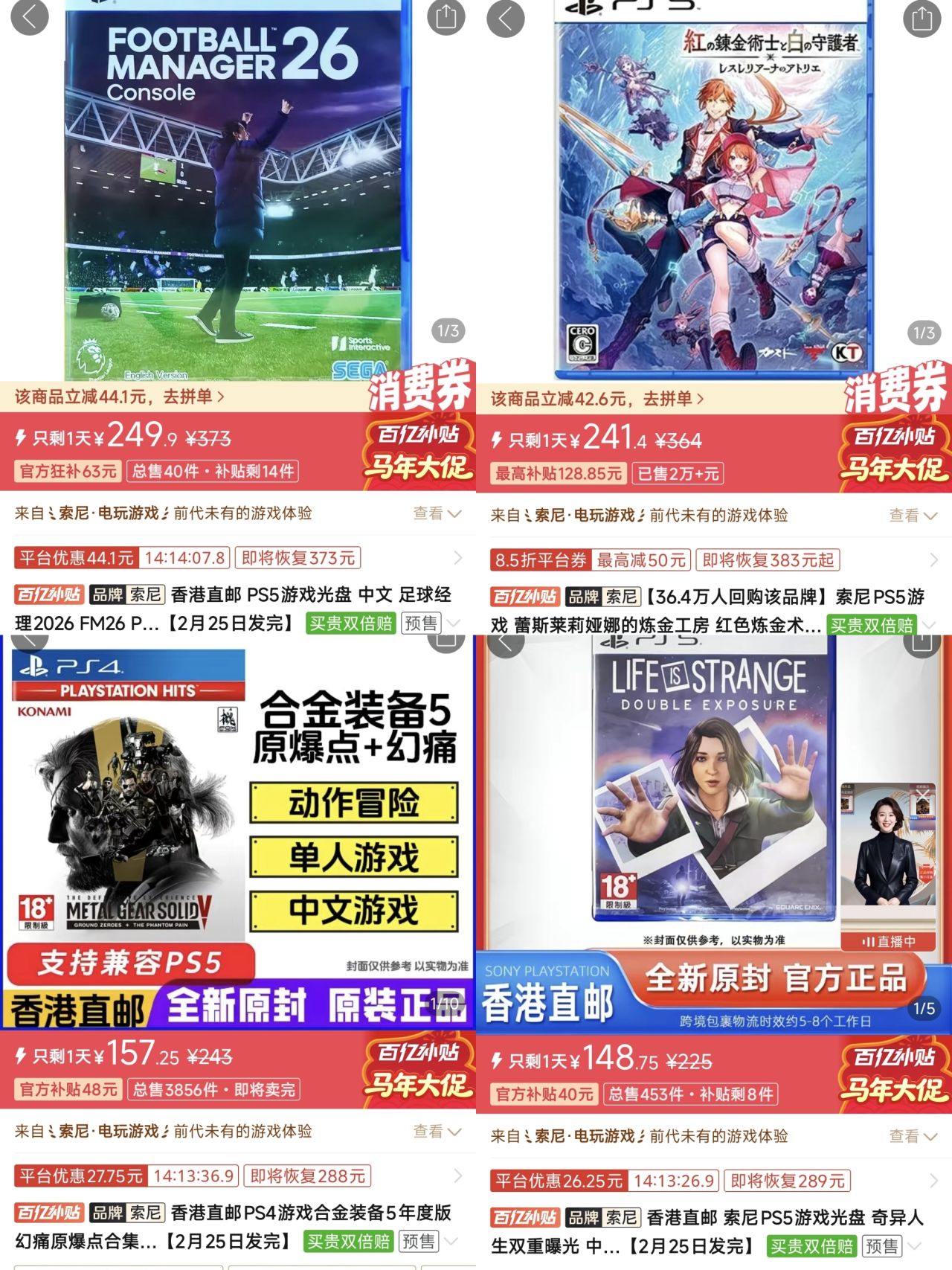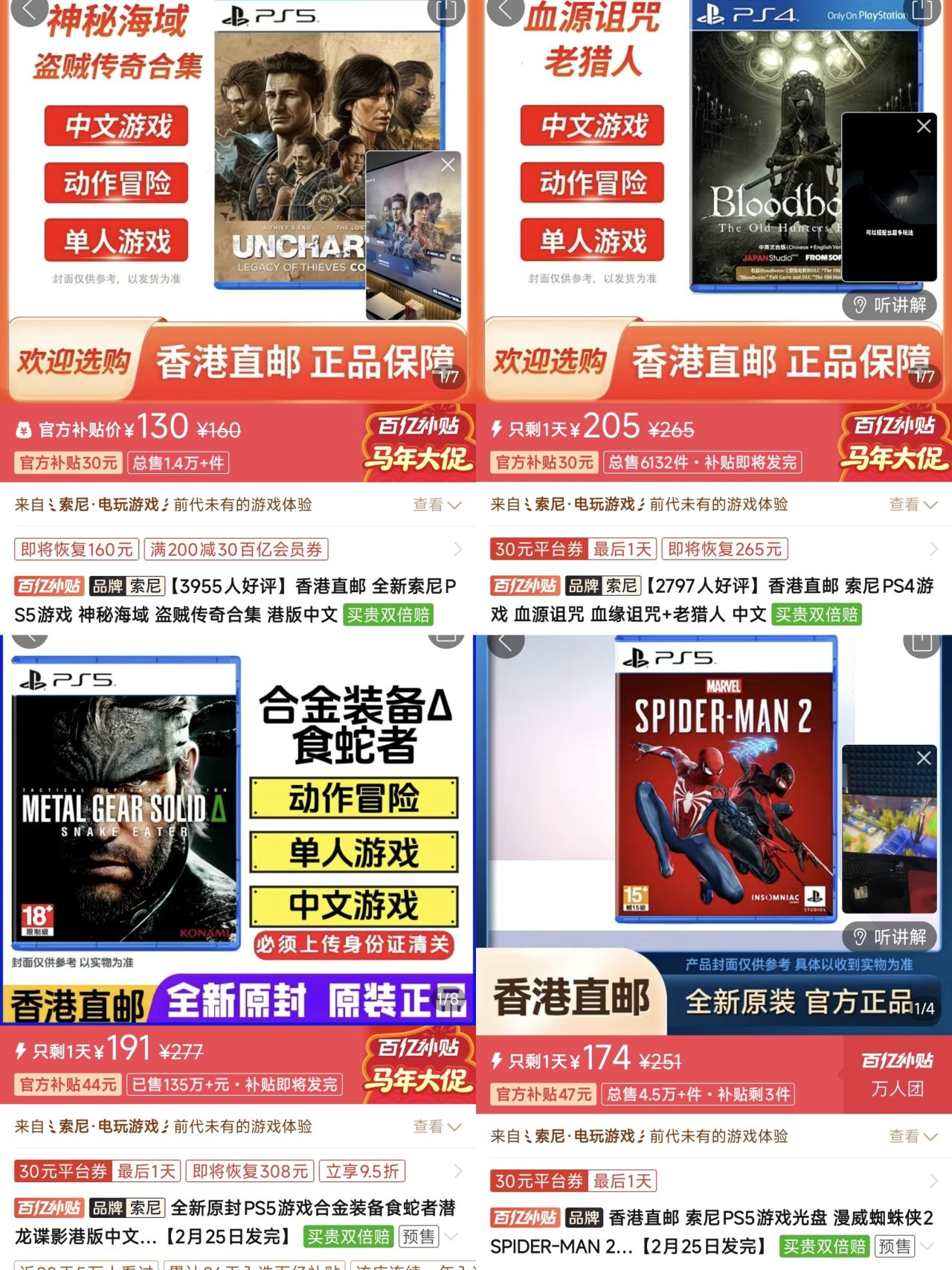 4.《合金装备3食蛇者》🇭🇰191(-30)|史低🇺🇳186
