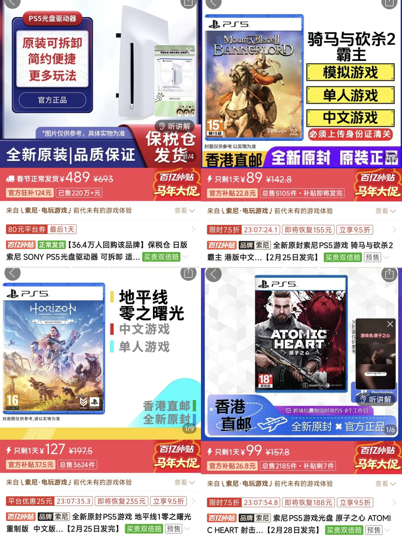 1。ps5光驱,489元
