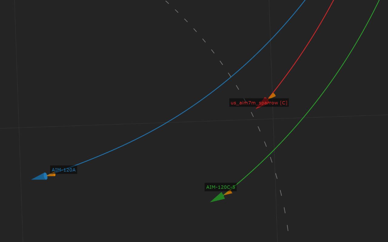 圖二爲圖一路徑的完整版,PL-12,德比和R77-1與目標交錯後未命中爲bug,實戰應當能命中