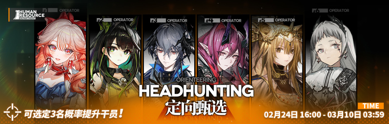 ★★★★★★(6★出率:2%):遥 / Mon3tr / 逻各斯 / 阿斯卡纶 / 维娜·维多利亚 / 艾丽妮
