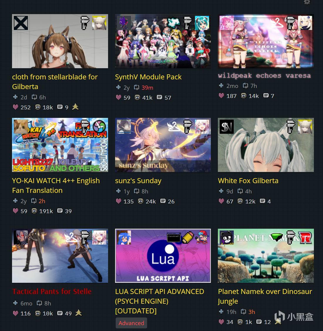 大型mod网站,涵盖老滚,星露谷,辐射,骑砍等多种游戏。页面相较N网更简洁一点,而且加载速度比N网快不少。更更重要的是进入这个网站不需要过人机验证。