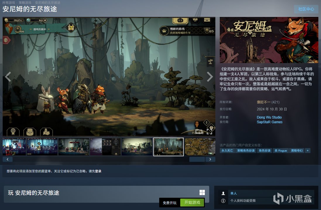 《安尼姆的无尽旅途》是一款高难度动物拟人RPG。你将组建一支4人军团,以第三人称视角,参与这场持续千年的中世纪王座之乱。