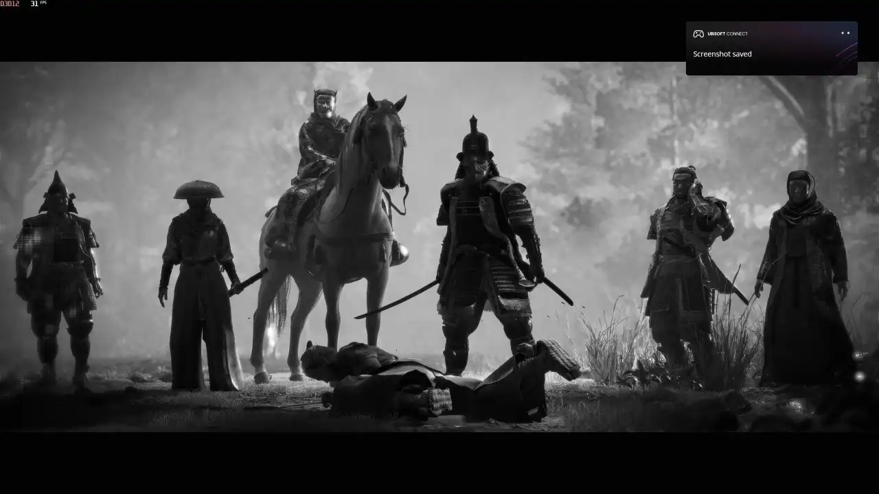 如果只有景,再美总会看腻。但人+景的搭配,构成了无声无言的场景叙事。没有一句台词,不必对话聊天,光看我就能感受到战国日本人的生活日常。我像是一个街头摄影师,捕捉每一个瞬间(育碧拍照模式推荐)。