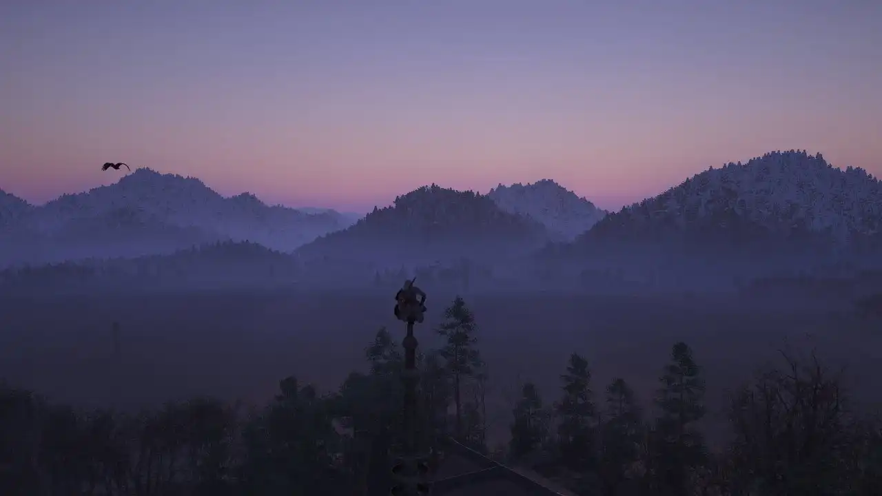 早晨与傍晚、秋季与冬季是观景最佳时间,没准能够看到千山鸟飞绝、独钓寒江雪的具象化。随手一拍,都能拍到壁纸级照片。虽然有传送点,但跑图本身就是一种享受,一定能看到不期而遇的风景或者人。