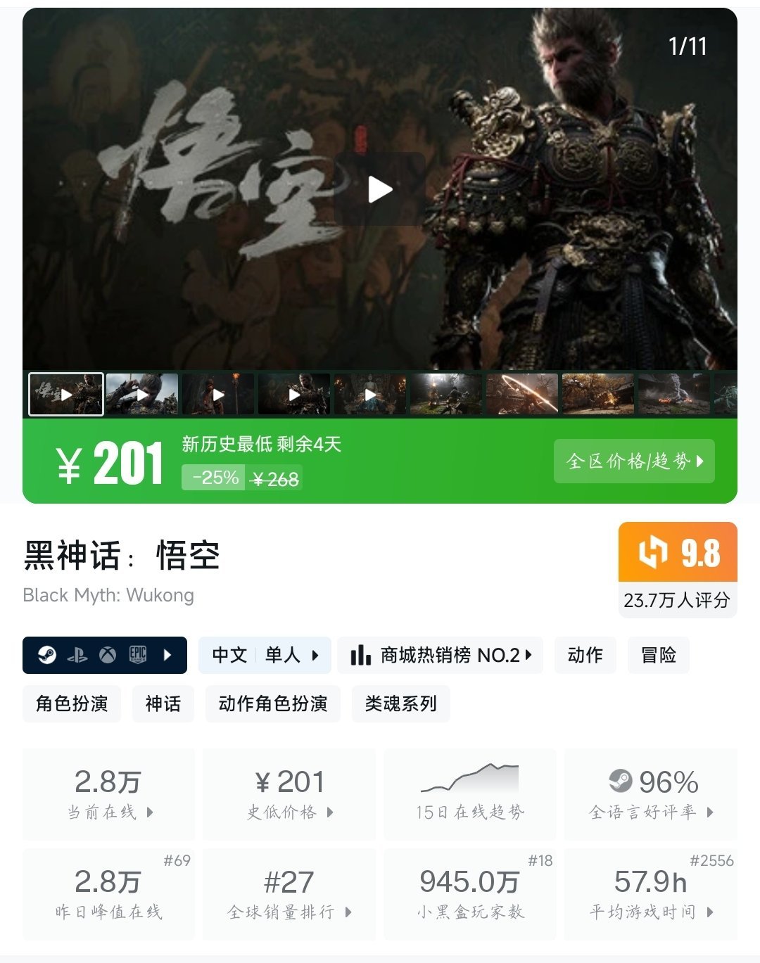 1、《黑神话:悟空》