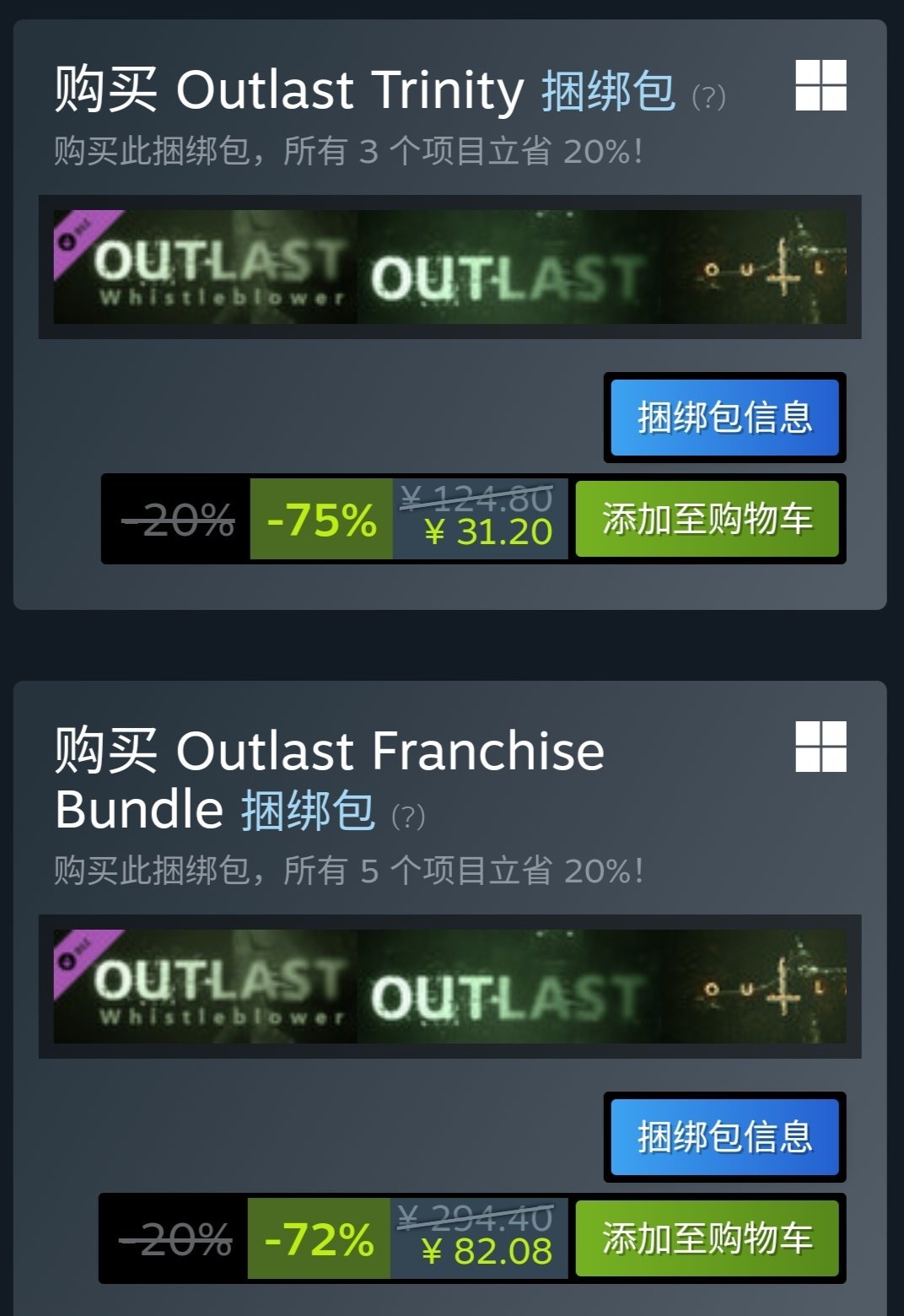 购买推荐:四款游戏都到达新史低价格,推荐购买此捆绑包。个人推荐游玩顺序:心中魔>希望镇>灰冥界>棉兰号