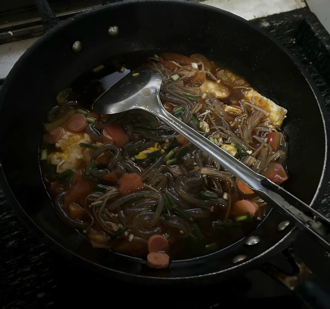 直到现在我都记得当时做过的两道菜:京酱肉丝和金针菇肉丸汤。