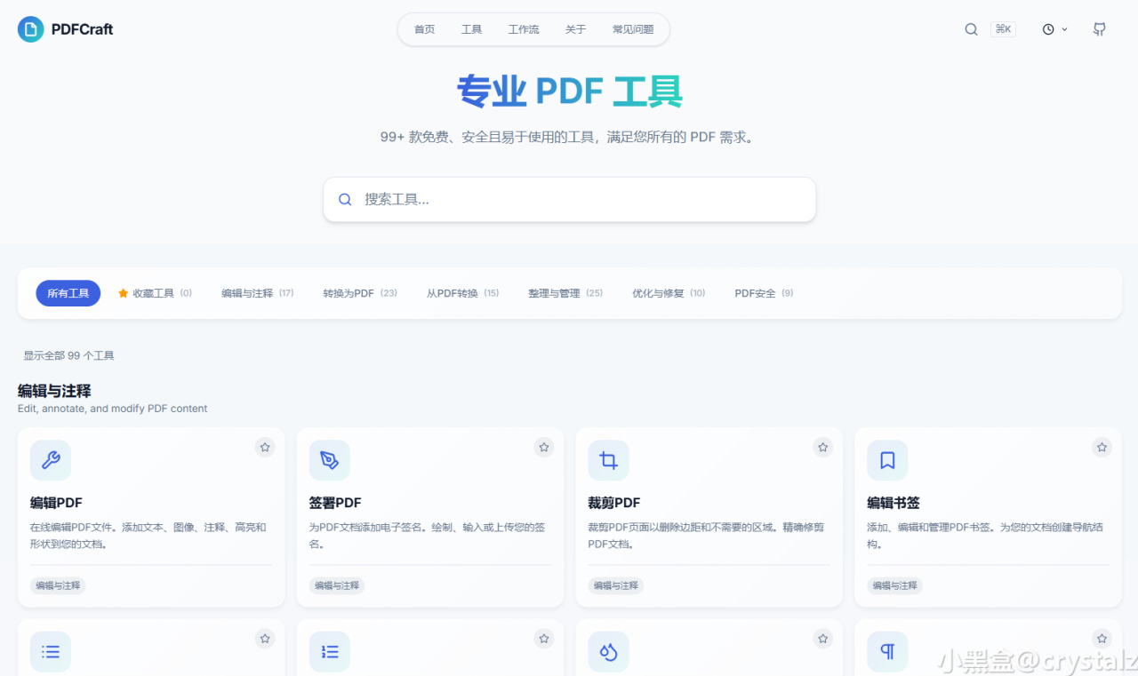 擁有 99+ 個專業 PDF 工具,支持合併、壓縮、編輯、轉換、頁面提取等各種實用功能。