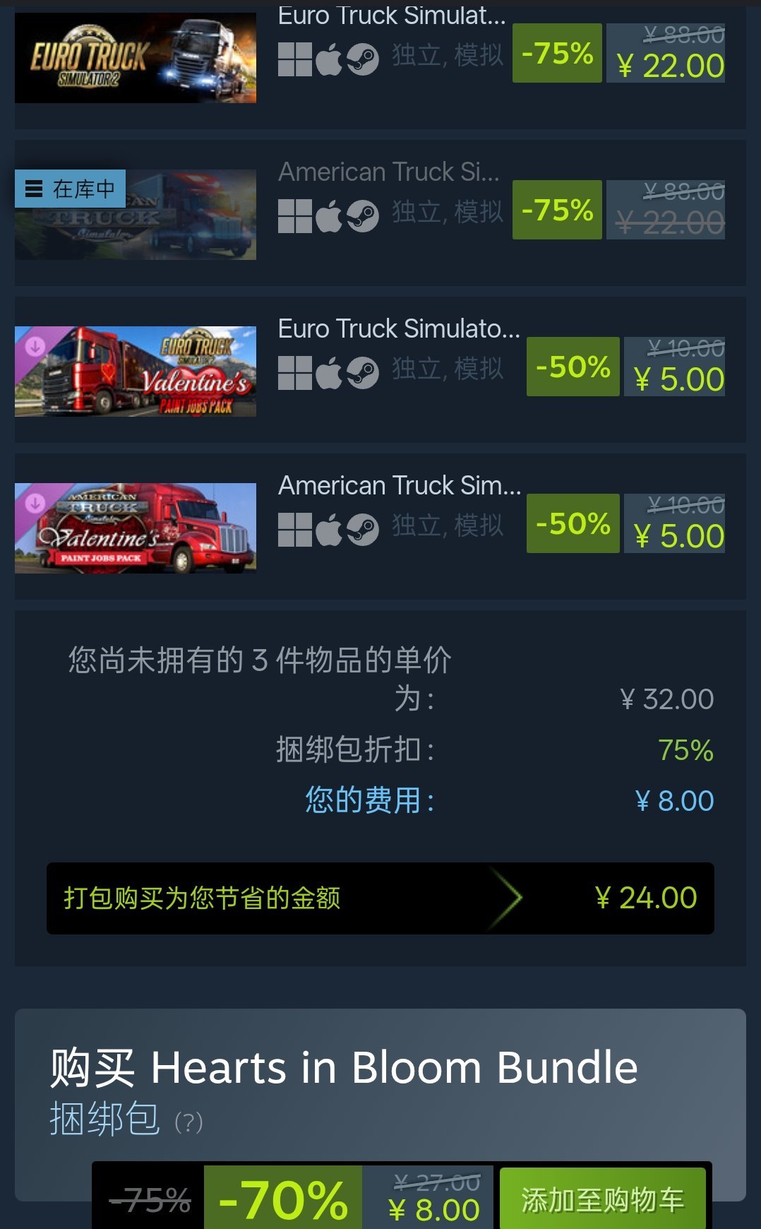 捆绑包包括:《欧洲卡车模拟2》+《美洲卡车模拟》+2个DLC