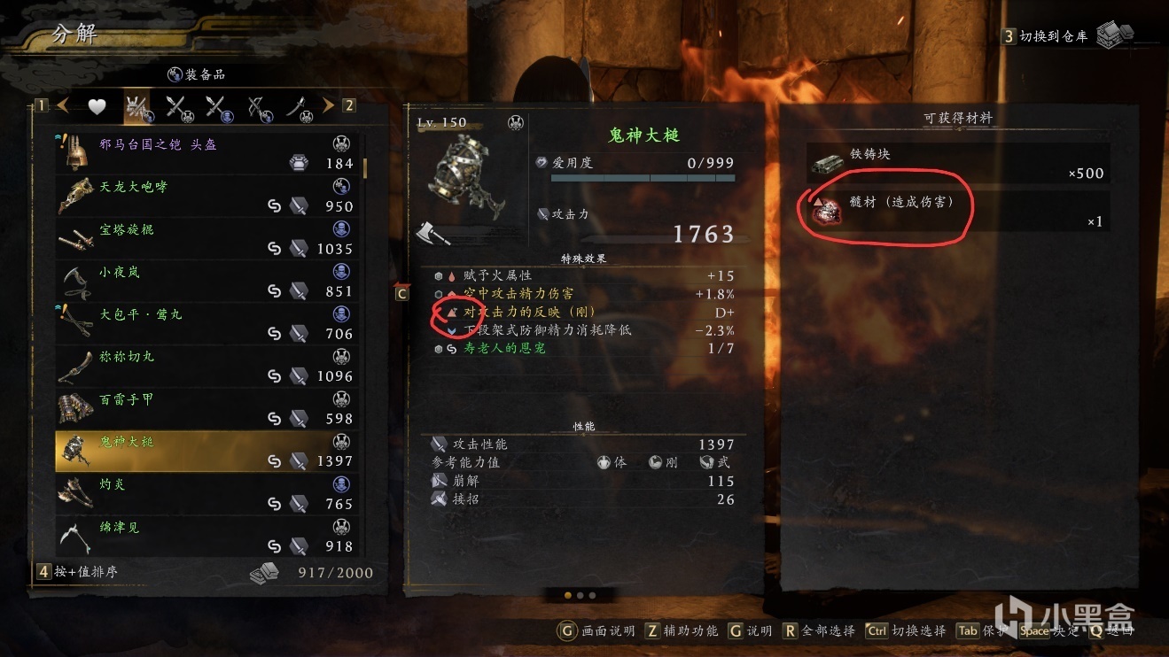 髓材:在解鎖鐵匠鋪後,繼續推進遊戲進一步解鎖鐵匠鋪的功能,分解帶錘子標識的裝備會給對應的髓材,之後就可以使用加工功能給其他的裝備打上這個髓材(詞條);