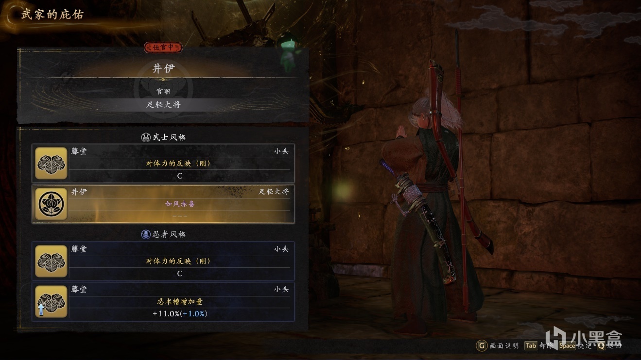 心法心得,對應武士/忍者的各種有益詞條,可以在神社中設置,在有限的容量中可以設置想要的技能心法。