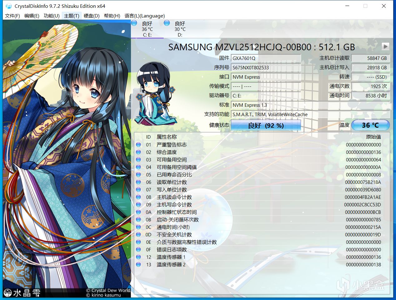 寫入掛鉤tbw,通電次數跟時間可判斷是否爲新盤及硬盤使用者的日常使用習慣,較低的溫度可延長硬盤的使用壽命,減少系統藍屏及報錯。
