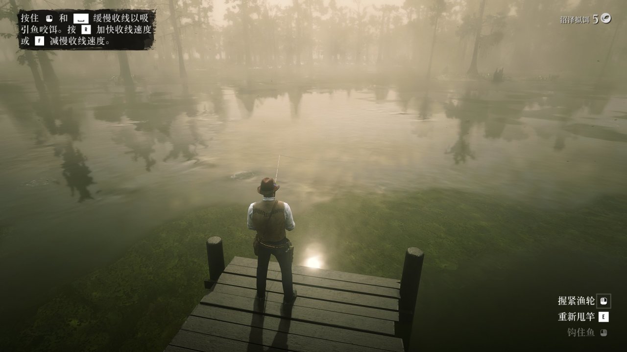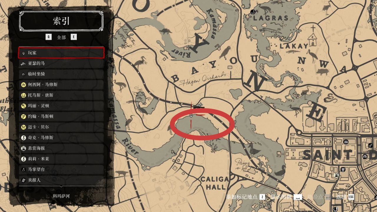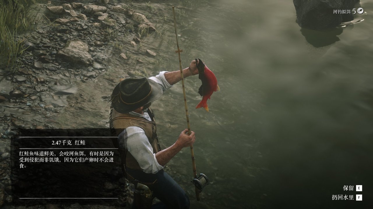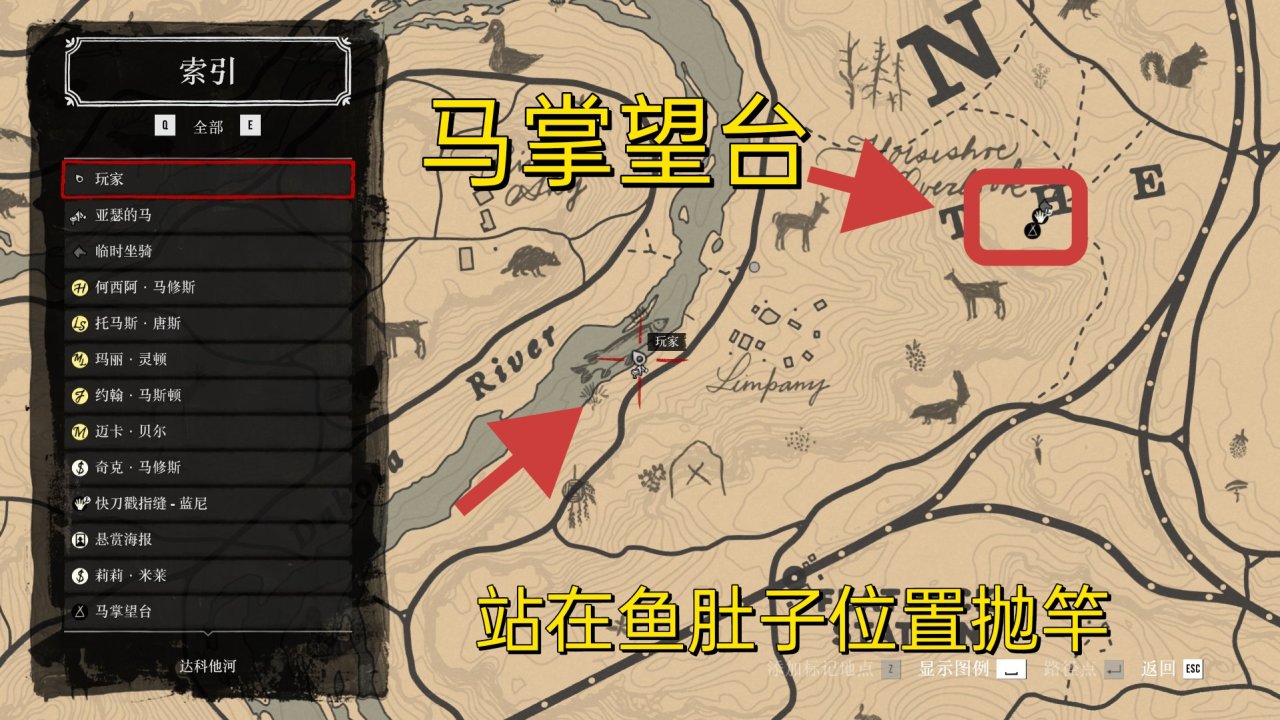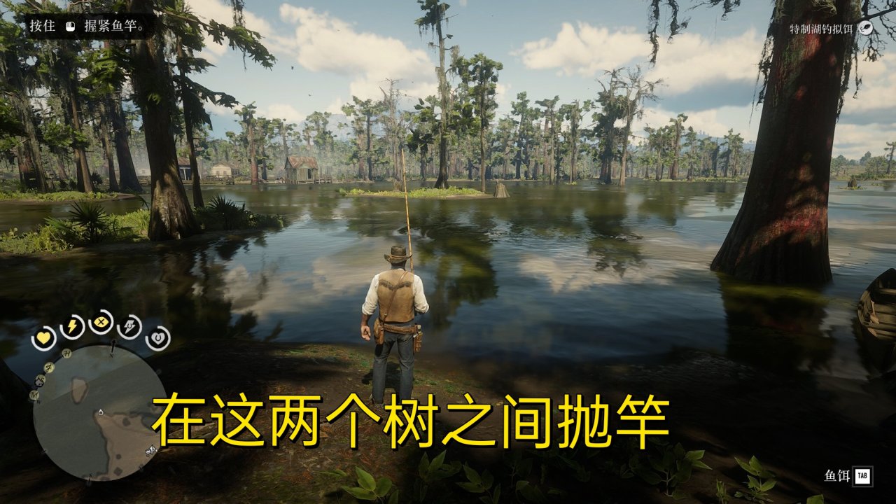 在高樹地區左上角小湖裏,亞瑟來會刷平克頓偵探,可以直接莽進來,甩開平克頓的間隙釣,釣完就跑。