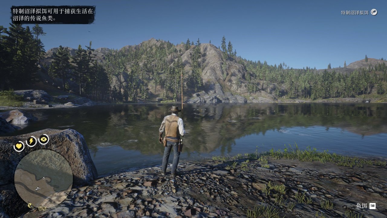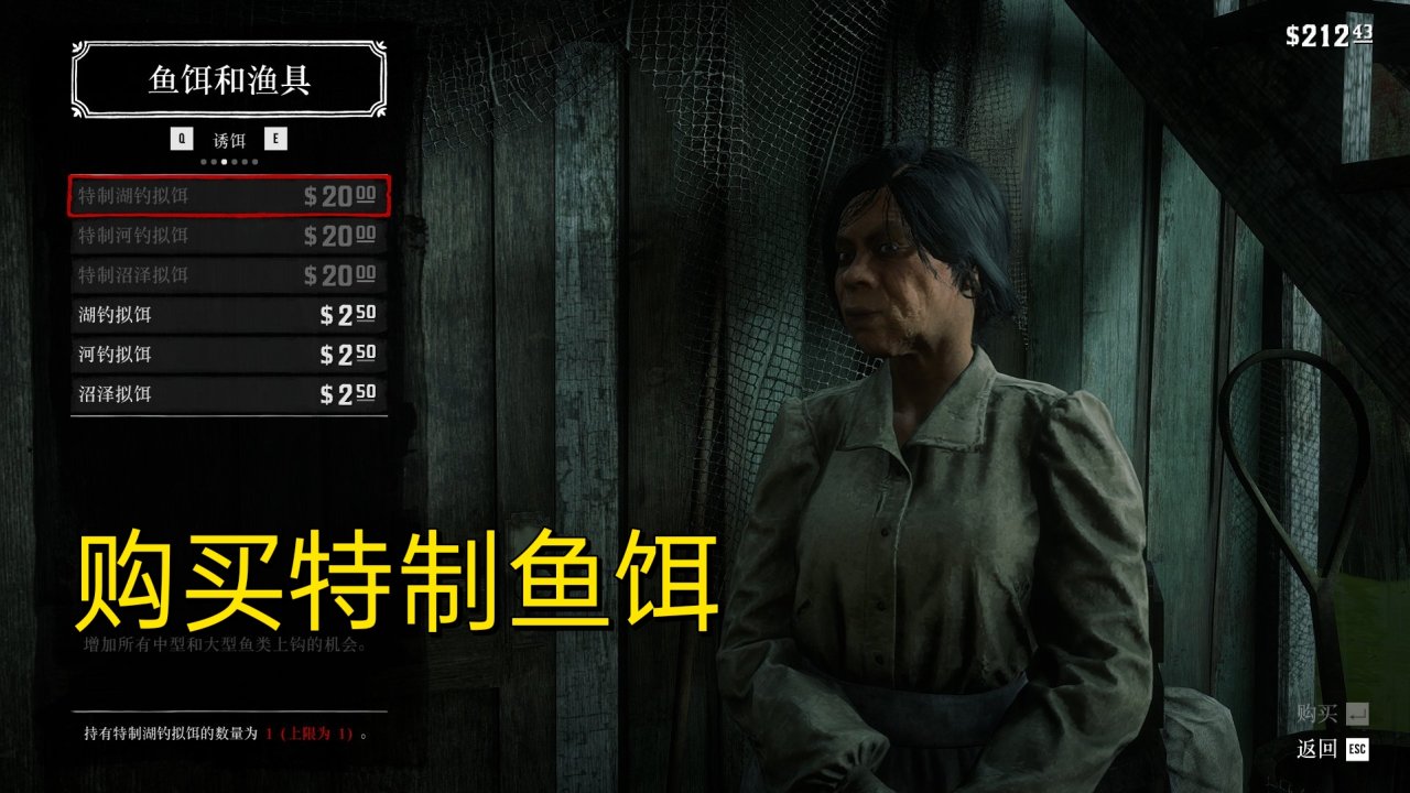 開啓任務: 做完主線“得人的漁夫”後,來到烙鐵湖這個位置,接天生釣手陌生人任務,然後去“拉格拉斯”魚餌店購買特製擬餌,普通魚餌也買一下。