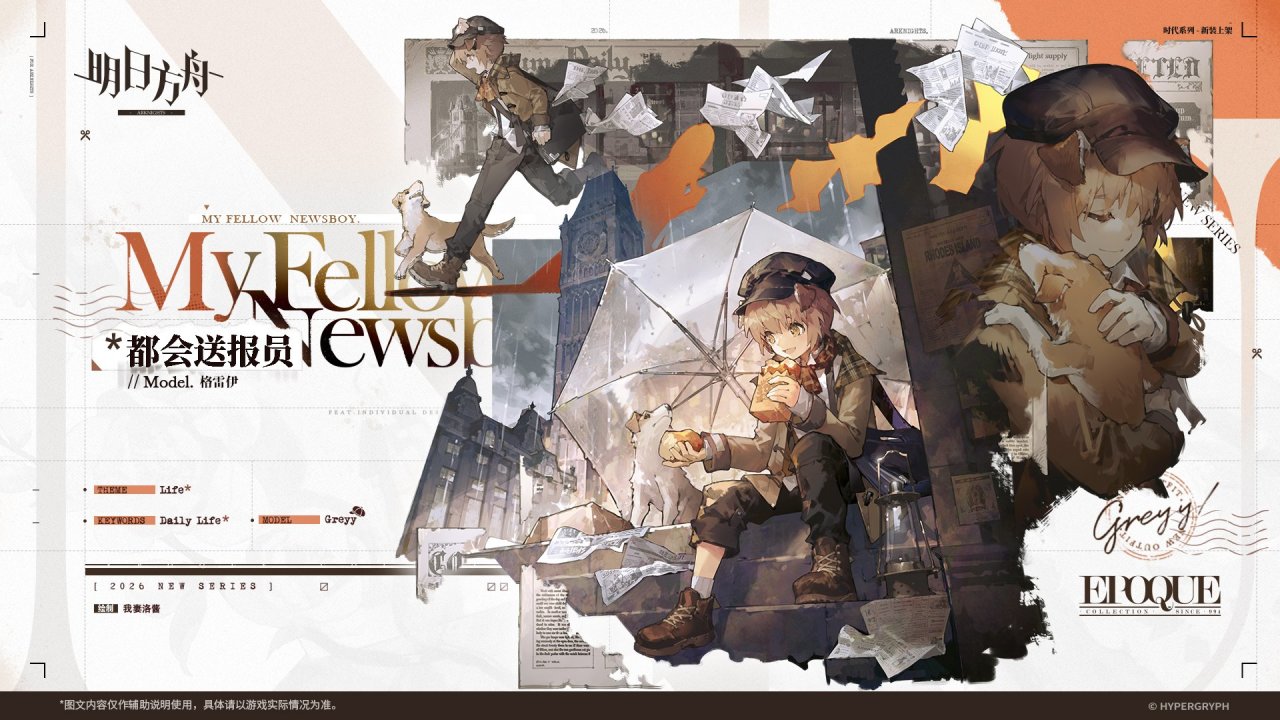 EPOQUE系列新款/都会送报员。格雷伊派送报刊时的着装。耐磨外衣配上厚实靴子,再裹一条格子围巾,就足以让他在穿越广场与小巷时无惧风雨。