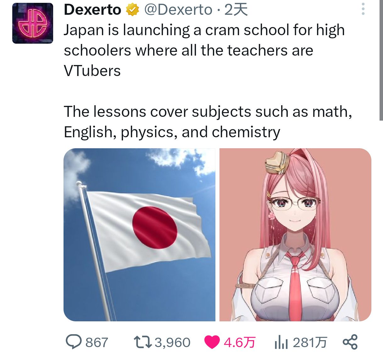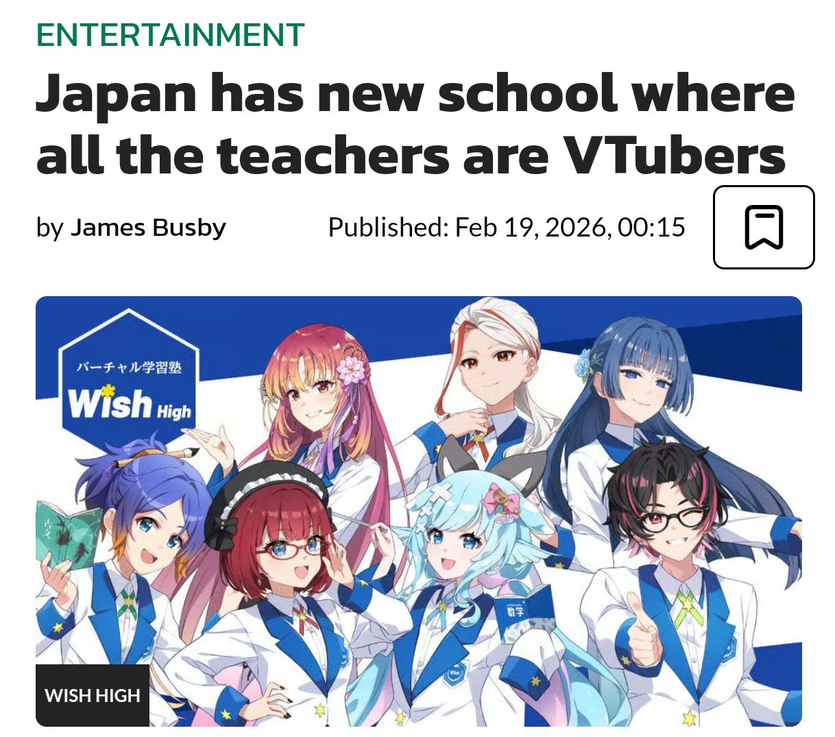 一家辅导公司推出了据称是日本首个全虚拟主播(VTuber)教师在线补习学校